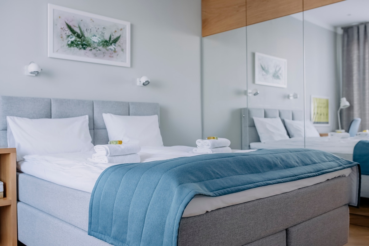 Iflethi entle, ethe cwaka eyi-45m ² Gris ePlac Unii Lubelskiej enezinto ezinokusetyenziswa ezininzi xa kuza kuhlalwa ixesha elide okanye elifutshane. Ibhedi etofotofo, igumbi lokuhlambela elitofotofo, ikhitshi elimnandi, igumbi lokuhlala elivulekileyo, i-AC ehlotyeni, neWiFi ekhawulezayo iyenza ibe yindlela efanelekileyo yokulungisa ingxaki kubahambi bezoshishino okanye bezolonwabo abafuna ihotele entle, kodwa bazimele. Unxibelelwano oluhle kakhulu kumbindi wesixeko kunye neDolophu Endala, kufutshane nemetro, iivenkile zokutyela, iibhari, iivenkile zokutyela, kunye nevenkile yokuthenga, kunye neenyawo nje ezimfutshane ukuya eRotal Łazienki Park.