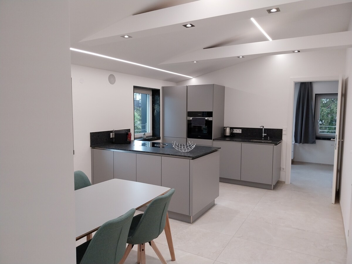 Iflethi entle/ephezu kophahla yale mihla eSalzburg embindini wedolophu endala enembali. Iflethi yethu esandul 'ukwakhiwa ngo-2018 enefenitshala ekufuphi. 28 m ² inendawo yokuhlala/igumbi lokulala elinekhitshi elincinci nendawo yokutyela kunye negumbi lokuhlambela labucala elineshawa. Ibhedi elala abantu ababini inobukhulu obuyi-180x200 cm. Ijikelezwe ziivenkile zokutyela ezahlukeneyo kunye neendawo ezidumileyo zaseSalzburg, inikezela ngendawo efanelekileyo yokubuka iSalzburg.