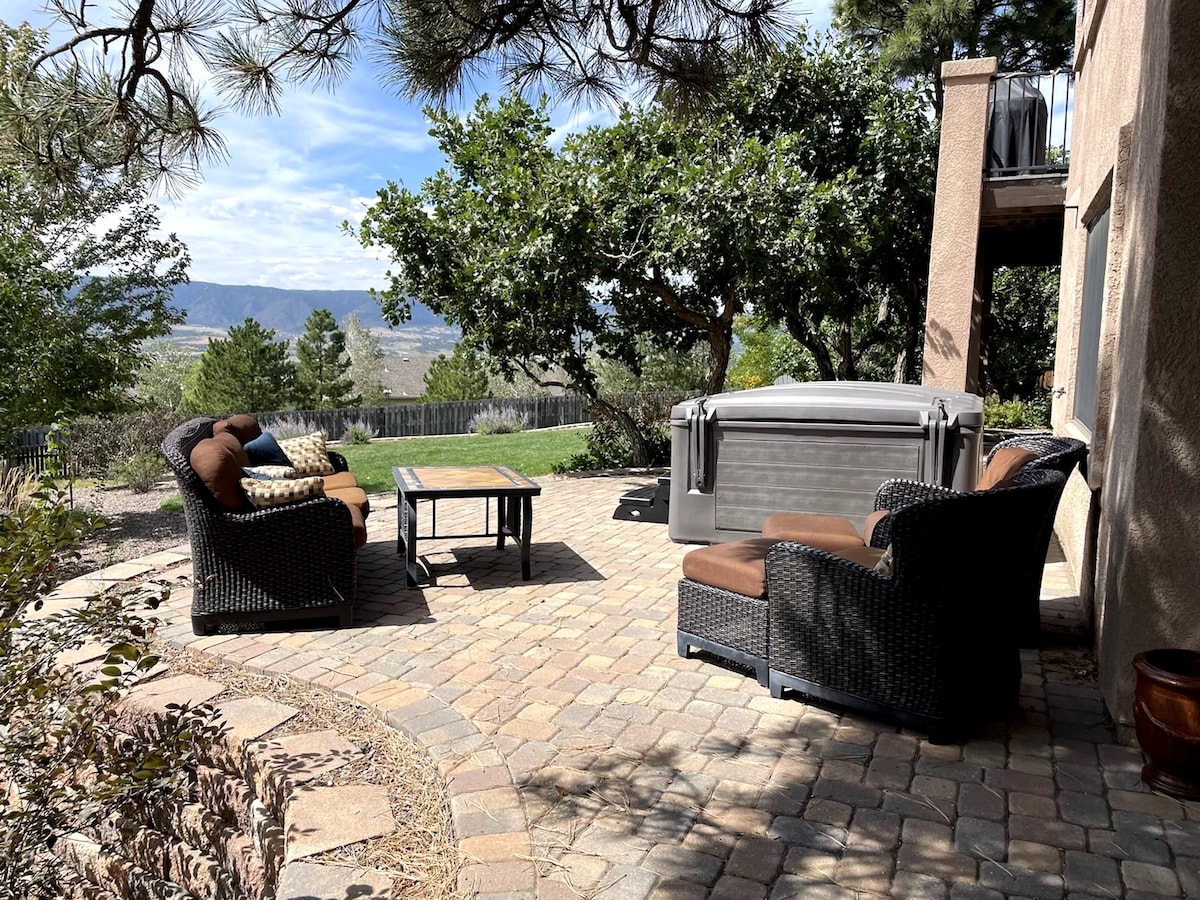 ★Indawo: 1 mi ukuya kwi-Pinecrest Event Centre, imizuzu eyi-20 ukuya kwi-Air Force Academy ★Ngaphandle: 0.7 mi ukuya echibini xa uhamba ngephenyane, imayile eyi-1 ukuya ekunyukeni intaba ★IYADI: Ibiyelwe kwi-w/emgodini womlilo, ibhafu enamanzi ashushu, i-hammock nemidlalo ★IGARAJI w/ii-kayak nee-racket zentenetya ★IVERANDA: Indawo yokutyela, izitulo eziqengqelekayo nento yokosa ILUNGELE ★INTSAPHO: I-Pack n play, ibhafu yosana, isitulo esiphakamileyo, abahloli abantwana, izinto zokudlala! ★70" I-Smart TV kwigumbi lokuhlala & 70" I-Smart TV kwigumbi lemuvi w/Apps + Cable ★Ukungena Kwi-wifi ★Ekhawulezayo Engenasitshixo Iibhedi ★ezitofotofo ★ Ikhitshi ★elingenayo ibhiya yaseColorado