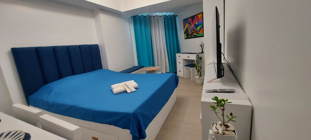Isitudiyo esiqaqambileyo, esincinci esinekhitshi elinento yonke, iWiFi, i-smart TV, indawo yokupaka esesitratweni engabhatalelwayo kwindawo ethe cwaka, ephakamileyo phakathi kwemithi. -Umgangatho wesithathu wesakhiwo se-apt (amanyathelo ayi-32 phezulu) -mgama wokuhamba ukuya kwi-mini mart, i-chapel, i-walundromat, ipuli -Driving imigama: -Beaches: Zonke izandla-5mins & Camayan-15mins -Nearby restos: Acea-3mins & Rali 's-8mins -Ocean Adv / Zoobic: 12-15mins -Royal Duty Free / Pure Gold / Starbucks-10-12mins -I-airport: 2mins -CBD: 15mins -Self ukubhalisa xa ufika