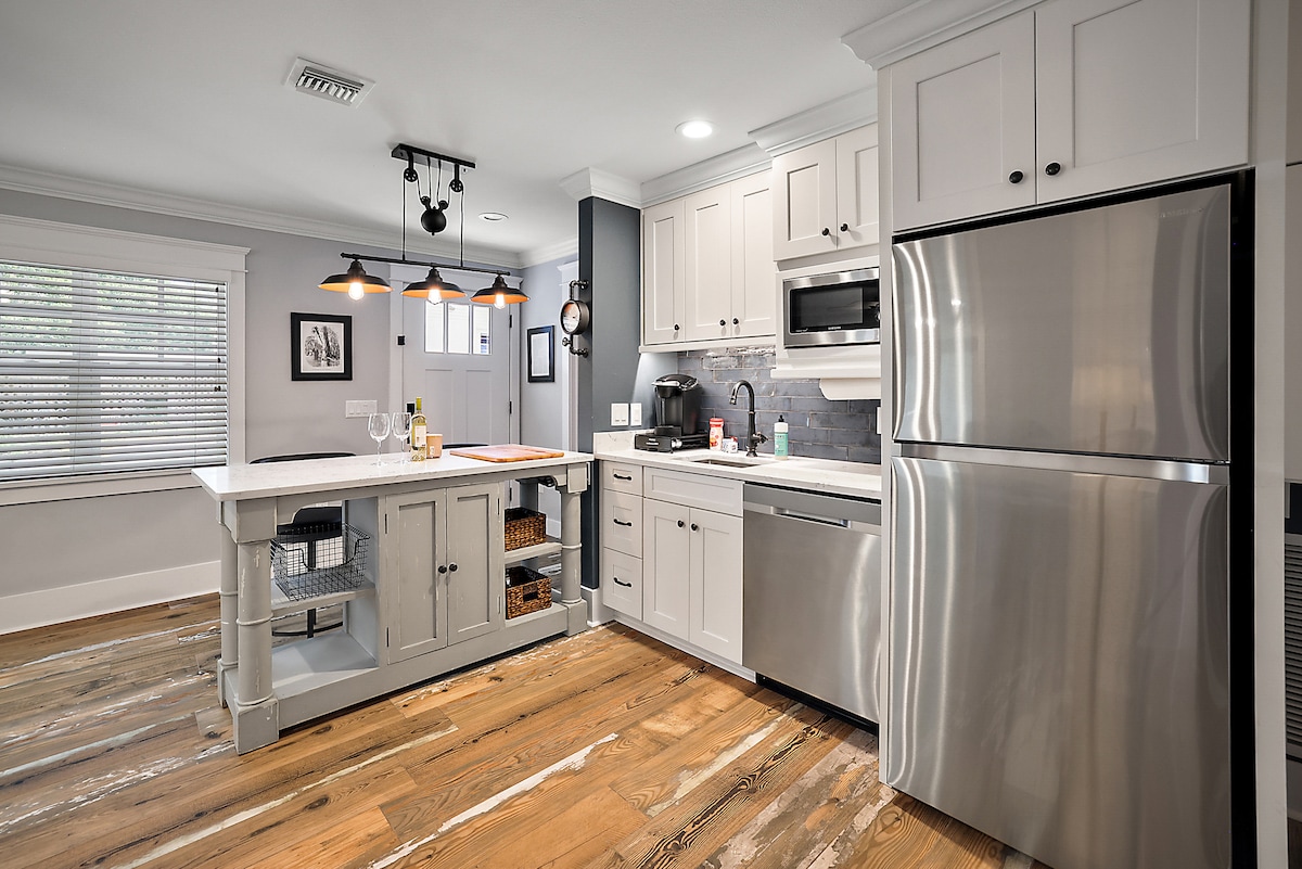 Umgama wokuhamba ngeenyawo ukuya kuzo zonke iiDowntown Mount Dora! Igumbi lethu lokulala elithandekayo elinamagumbi ayi-2, indlu esemaphandleni yebhafu eyi-1 yeminyaka yoo-1940 isandul 'ukulungiswa. Inekhitshi elinento yonke, idekhi enendawo yokosa igesi nendawo yokubasa umlilo yangaphandle. Indawo yokuhlala etofotofo nenomtsalane ene-smart TV yee-intshi eziyi-65. Igumbi lokulala eliphambili line-King bed ne-smart tv. Igumbi lokulala lesibini lineebhedi ezimbini ezitofotofo. Iibhayisekile ziyafumaneka ukuze zisetyenziswe. Enoba uza kuphumla, ukhephe, uthenge okanye uthathe inxaxheba kwenye yemibhiyozo emininzi yaseMount Dora, cinga ngokuhlala apha!