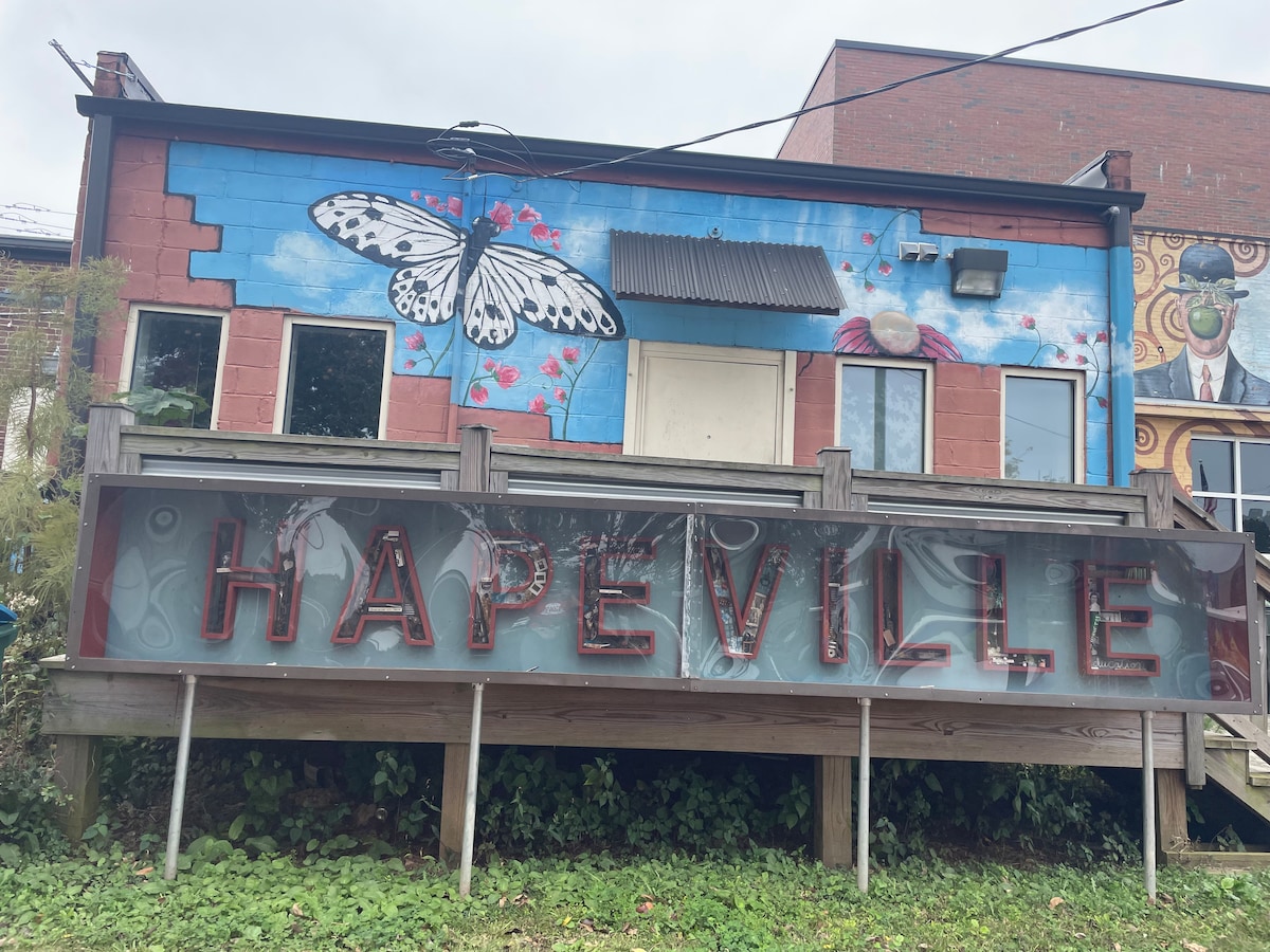 Ifama Yasezidolophini! Zipholele kwindawo enkulu, eyimfihlo yangaphandle enesofa, itafile, imidlalo, kunye nehammock. Le Ndlu Incinci ibanzi, yeyabucala, ibe inezinto ezininzi zokuzonwabisa. Ibekwe bucala ngasemva kwendlu yam. Akukho mfuneko yokuqhuba! Uhambo olufutshane oluya kwiivenkile zokutyela nezolonwabo eDowntown Hapeville kuquka indawo yemidlalo yasekuhlaleni, iivenkile zekofu, iPorsche Headquarters, indawo yokwenza ibhiya, iipaki, iivenkile zokutyela, iibhari, ivenkile yokutya kwezempilo, i-yoga. Imizuzu elishumi ukuya kwidolophu yaseAtlanta nemizuzu eyi-5 ukuya kwisikhululo seenqwelomoya.