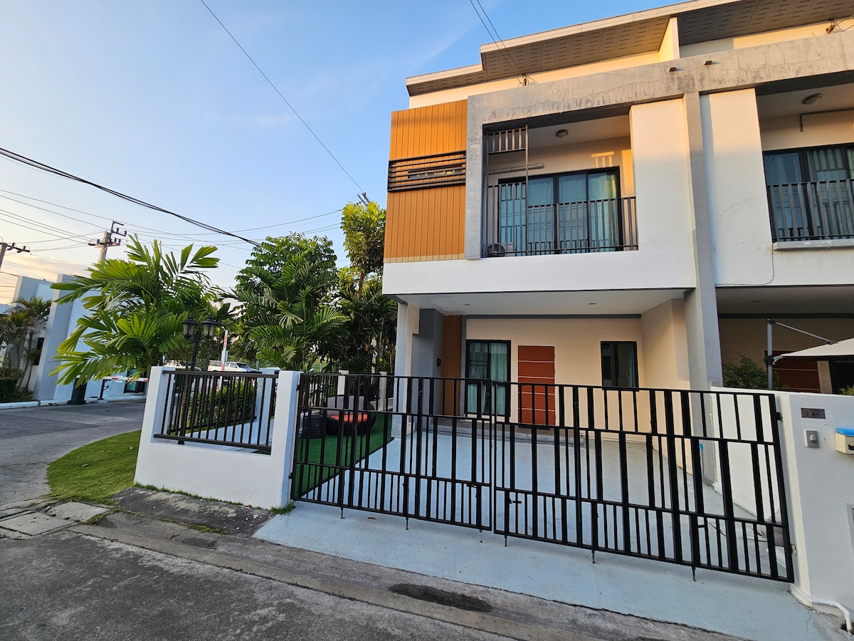 Indlu yethu epholileyo netofotofo enamagumbi okulala ayi-3, igumbi lokuhlambela eliyi-2, igumbi lokuhlala nekhitshi. Ngokuchasene ne-Mega Bangna ebonelela ngebhasi yokuthutha simahla ukuya kwi-BTS Udomsuk ukuhlola iBangkok. Qaphela ibhedi njengoko sinikezela ngebhedi eneenkwenkwezi eziyi-5, amaphepha okulala atofotofo kakhulu, uzive ngathi usilika, ukuze uphumle emva kohambo olude. I-Maldives Style clubhouse enechibi lokuqubha kunye nokuzilolonga iya kukwenza uzive ngathi uhlala kwiresort. Indawo ekuyo indlu yimizuzu eyi-20 ukuya kwisikhululo seenqwelo-moya, kungekhona embindini wesixeko, kwindawo ezolileyo nekhuselekileyo. Uza kudinga i-Uber njengoko kungekho zithuthi zikawonke-wonke ngaphambili.