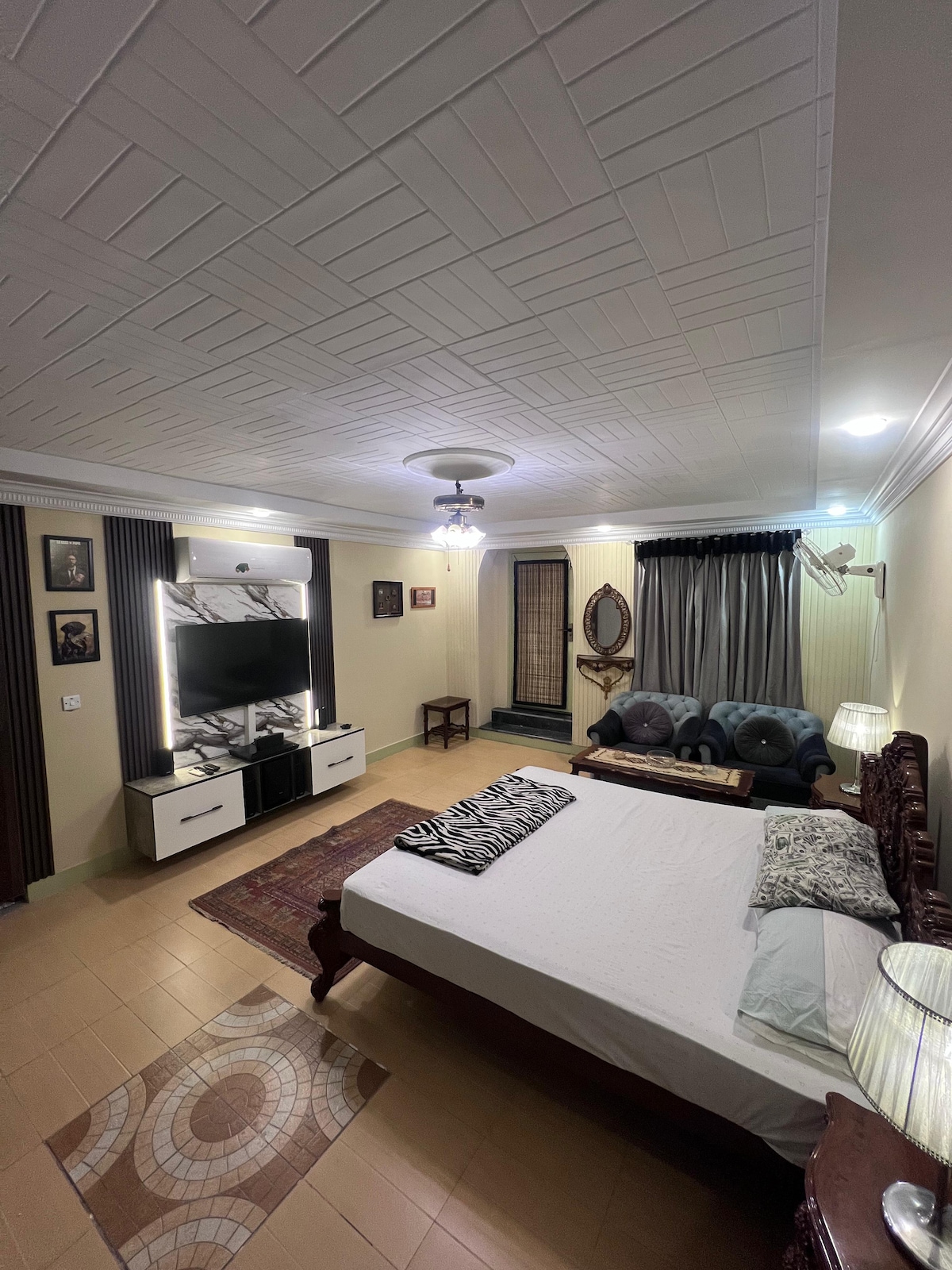Escape to our serene bedroom oasis, perfectly suited for couples and small families seeking a relaxing getaway .Enjoy a comfortable night's sleep in our cozy bedroom . The apartment features a comfortable bed, a well-equipped kitchenette, and a fully smart tv, air conditioner, 24/7 internet, electric heating rod for hot water. Located in a prime location, you'll have easy access to nearby attractions such as imtiaz mall, Buch international hospital, cinema and restaurants .
