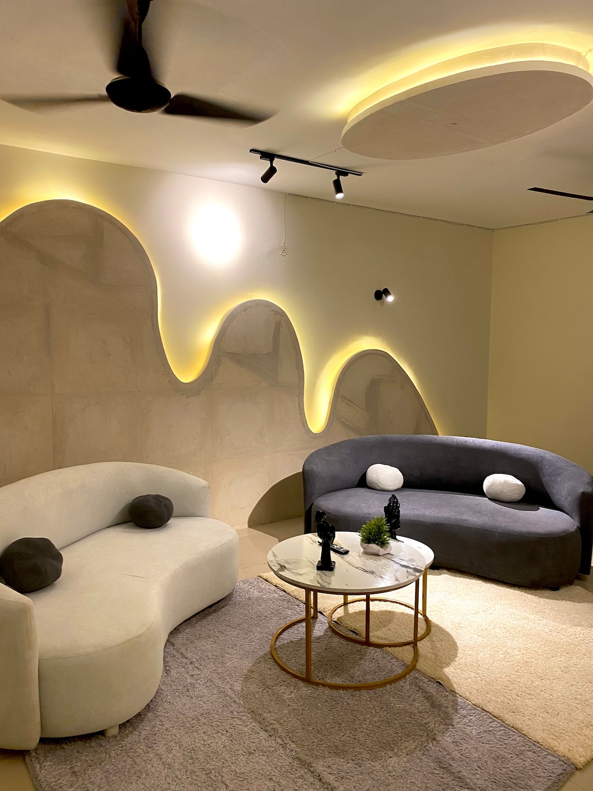 Beka embindini we-Islamabad kumgama omfutshane xa uhamba ngeenyawo ukusuka eF-7 Markaz, eF-6 Markaz naseBlue Area. Inendawo yokuphumla evulekileyo, indawo yokutyela nekhitshi elinento yonke kunye namagumbi okuhlambela akwigumbi lokulala ngalinye kwezi zimbini. Igadi yangasemva evulekileyo nethe gabalala! I-High Speed WiFi Internet + Nayatel TV (British/American/Pakistani Entertainment/ on Demand Movies, Live Sports, News) zonke ziqukiwe. Ilungele iindwendwe zamazwe ngamazwe kwisixeko sethu esikhulu!!