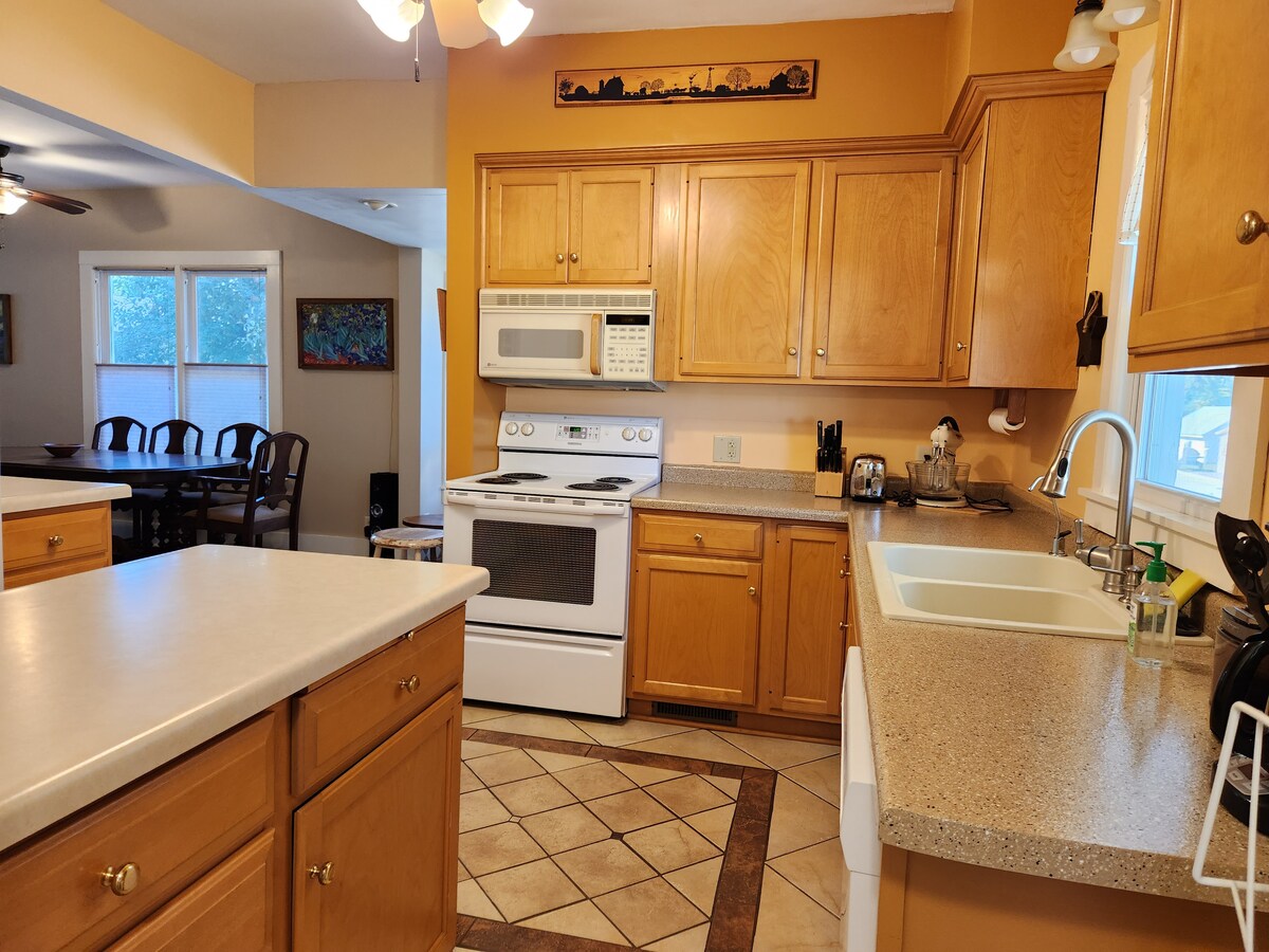 Ndiyayithanda!!! Le iza kuba yindawo entle yokuhlala. Le ndlu iphantsi intle ineminyango ephumayo eza kukukhupha uye kwindawo entle phandle kunye nomlambo iDes Moines ehamba ngasemva kwendlu. Kukho iigadi ezintle zeentyatyambo onokuhamba kuzo, kunye nechibi elikhulu lokuqubha okanye uvumele usana lwakho ludada okanye luhlale ecaleni kwaye uphulaphule ingxangxasi okanye umthombo wamanzi okanye iintaka zicula okanye zibone ixhama lihamba.