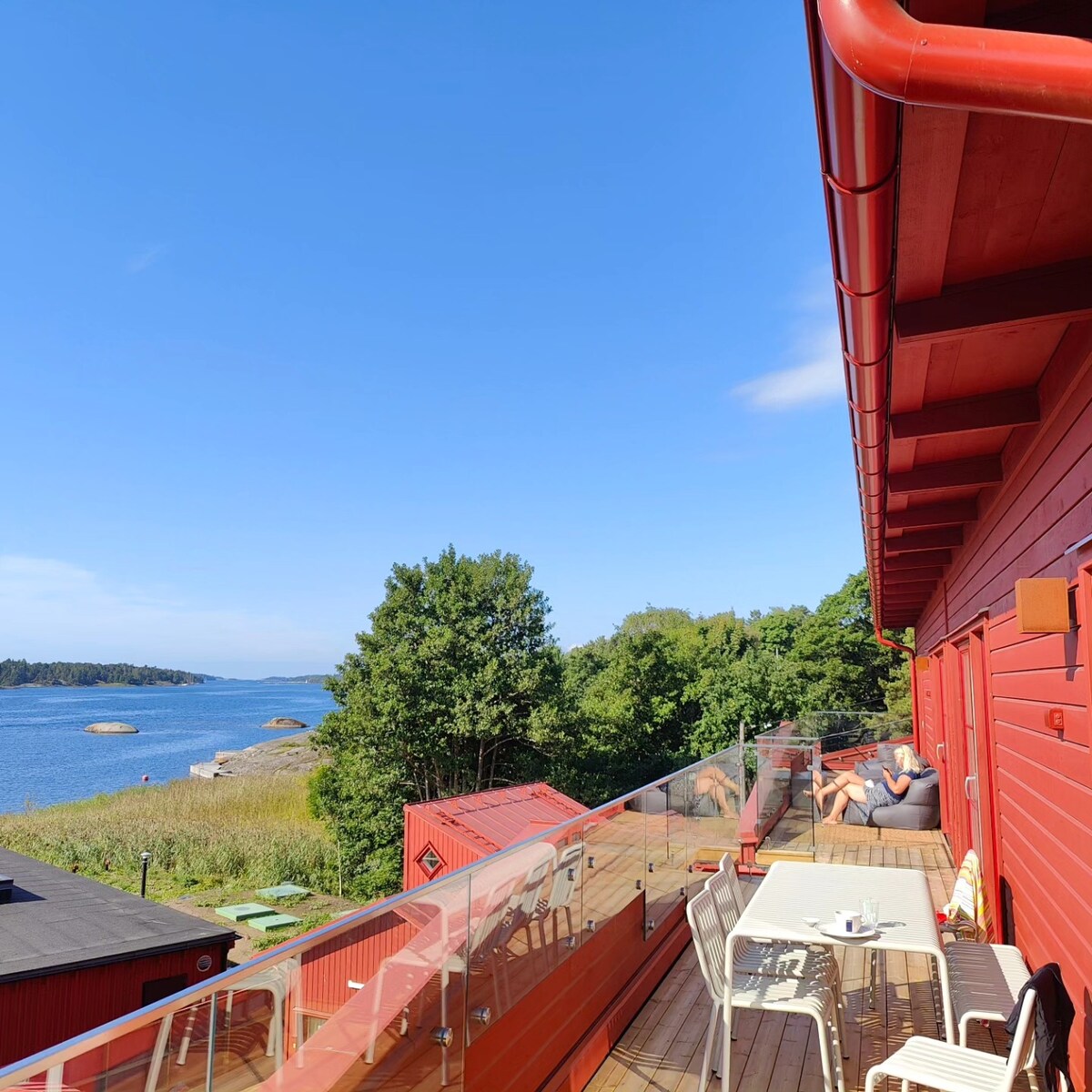 Indlu esemaphandleni ikwiziqithi zaseStockholm, kwisiqithi sase Řlgö apho unokubona kakuhle amanzi. Ukutshona kwelanga, i-jetty yabucala kunye ne-sauna esitshisa iinkuni. I-Veranda neveranda. Igumbi lokulala linebhedi enkulu. I-WiFi kunye ne-TV. Indawo efanelekileyo yokuba abantu ababini bonwabele umoya omtsha, uxolo kunye nokuzola, isandi esivela emanzini kunye neziqithi ezintle zaseStockholm. Nceda ufunde okungakumbi ngeendlela, imithetho yekhaya. Ayicetyiswa kwiintsapho ezinabantwana ezingakwaziyo ukuqubha ngenxa yamanzi anzulu.