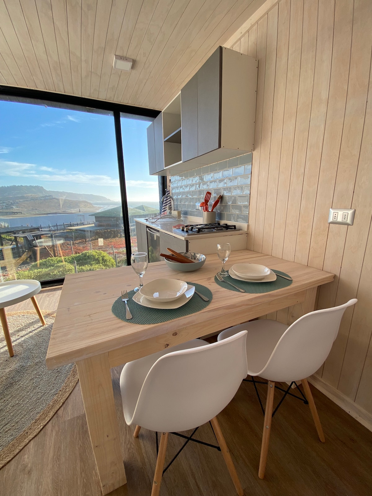 Indlu yamaplanga etofotofo kubantu abadala abayi-2 + abantwana abayi-2 kwiiflethi ezikhuselekileyo, imizuzu eyi-35 ukusuka kulwandle lwasePuertecillo, olulungele abantu abasefa kunye nabathandi bemvelo. Ixhotyiswe ngamandla elanga, igesi kunye namanzi okusela. Yimizuzu eyi-20 ngemoto ukusuka eLitueche, iyure ukusuka ePichilemu naseMatanzas imizuzu engama-35 ukusuka ePuertecillo kunye neeyure eziyi-2,5 ukusuka eStgo. Ixhotyiswe ngothando ukuze ihonjiswe. Indawo ye-5000 m2 kwaye inombono ofanelekileyo weenduli. Inebhedi elala abantu ababini nebhedi ekwayisofa.