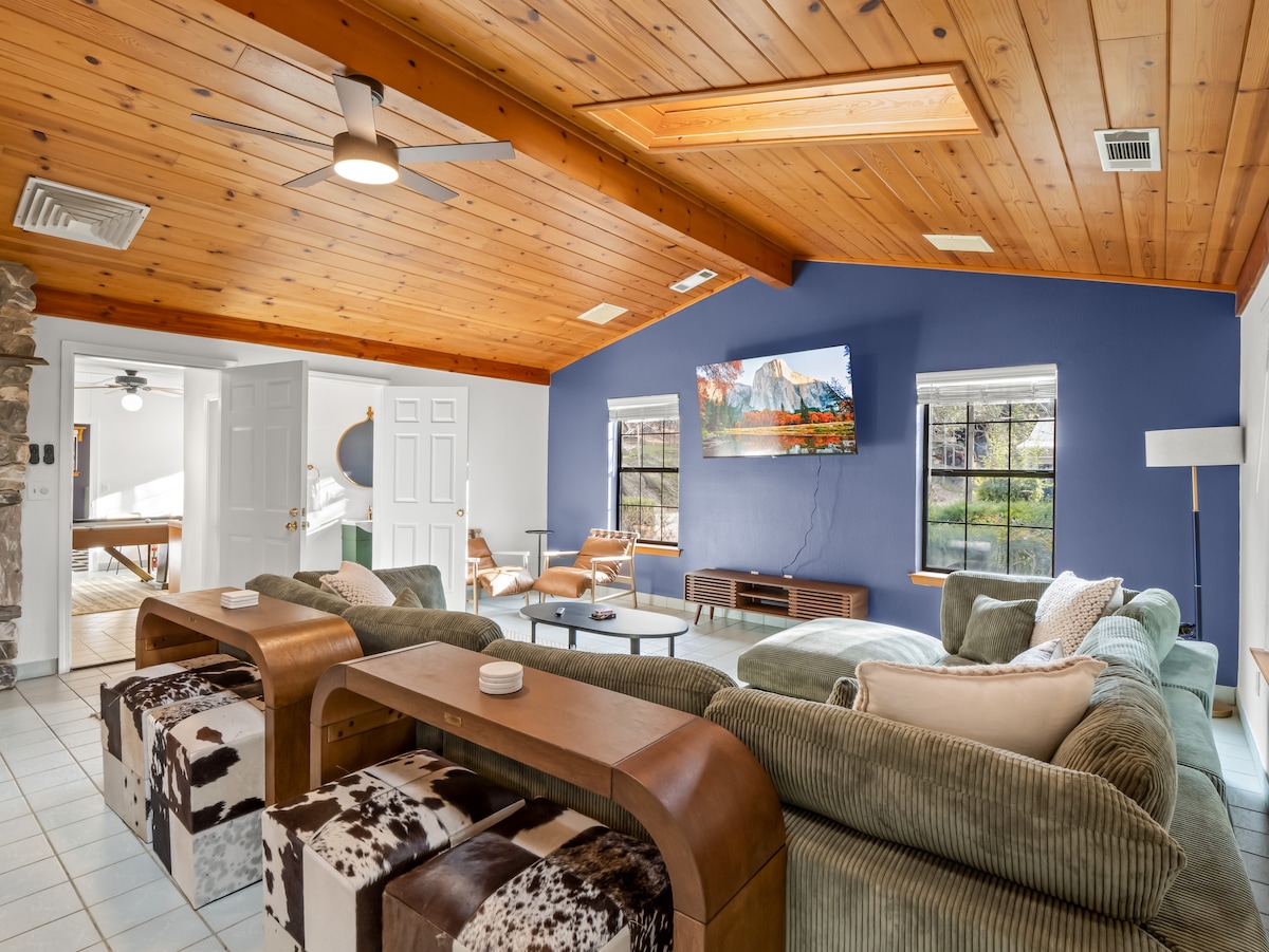 Zikhuphe uye kwindlu yethu yasezintabeni eyi-1600 sq. ft., indawo yakho efanelekileyo yokuhlala eYosemite! Iindwendwe zilala kamnandi kumagumbi okulala amakhulu ayi-2. Inebhafu enamanzi ashushu, igumbi lemidlalo, indawo yokusebenzela ekhethekileyo, umatshini wokuhlamba/wokomisa impahla kwigumbi, kunye nekhitshi elinento yonke. Iphakathi kwe-4 acres phakathi kweOakhurst neMariposa, yindawo yokuzola yokuzonwabisa okanye yokusebenzela kude. Yonwabela iintaba ezintle kakhulu xa ukumgangatho owenziwe ngaphandle uze uve iinkuba-krwe zitsholoza xa usebhafini enamanzi ashushu. Ilungele iintsapho kunye nezikhwele ezifuna indawo yokuhlala ezolileyo kufutshane nepaki.