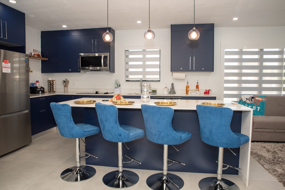 Indawo elungele intsapho neqela efumaneka kwimizuzu eya eHard Rock Stadium. Indawo yethu enamagumbi okulala ayi-3 inekhitshi elipheleleyo, amagumbi okuhlambela amahle ayi-2, indawo yokutyela, indawo yokuhlala etofotofo nendawo yeveranda ephandle yokonwabisa nokosa. Yenza ubusuku bomdlalo bube kwinqanaba elitsha kwigumbi lethu lemidlalo elimnandi.