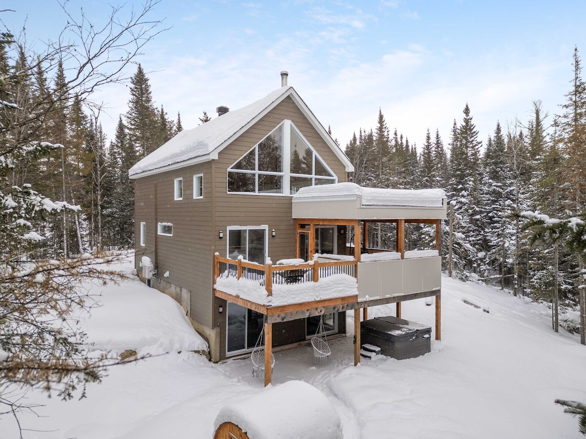 Unique haven of peace with breathtaking views! Located on a huge 100-acre estate with no nearby neighbors! Peace and tranquility guaranteed. Dogs accepted on condition until June 15. Dogs not allowed in high season. Cross-country skiing, snowshoeing and hiking trails on the doorstep. Spa with breathtaking views! In winter, a 4x4 vehicle is required to drive up the road to the chalet. THERE ARE CAMERAS ON THE PROPERTY Dogs welcome before June 15th + fees (no dogs in pick season). CITQ #30336