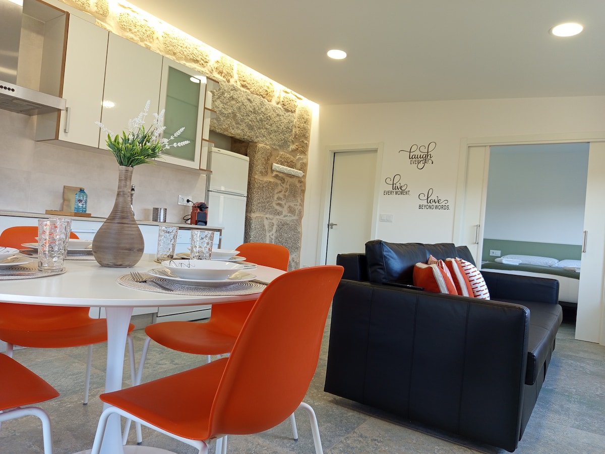 Libala ukukhathazeka kweli khaya lihle! Embindini wedolophana entle yaseAs Neves, unethuba lokunqumamisa uze wonwabele ukutya, ubuhle kunye nokuzola komhlaba wethu. Siyathemba ukuba uziva usekhaya! 200m ukusuka kwindawo yokuhlala: Ivenkile enkulu, ikhemesti, ukungena emanzini kunye neekhefi eziliqela. Sikwimizuzu eyi-12 ukusuka eSalvaterra de Miño nakumntla wePortugal,edityaniswe ngqo neMonção. 30 Mins Vigo Beaches
