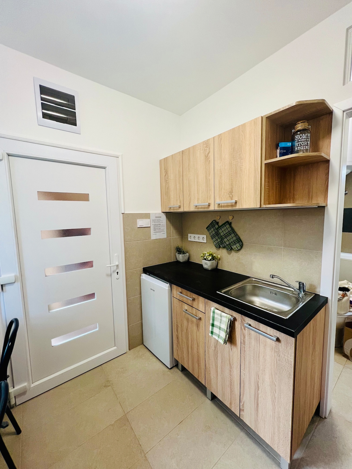 Iflethi encinci etofotofo, enomatshini okhupha umoya obandayo okanye oshushu. Unokonwabela ikofu yasekuseni kunye nokutya kwigadi etofotofo yeflethi. IBasilica nombindi wesixeko zikude ngemizuzu embalwa ngeenyawo. Kukho iimitha ezilikhulu zeDanube, apho kukho indlela yokuhamba ngebhayisekile ukuya kumbindi wesixeko kunye nebhulorho eya eSlovakia. Singakwazi ukuhamba ngebhulorho ukuya kwisikwere esikhulu saseSieve, ibhiya entle yaseSlovak. Kukho indawo yokupaka yasimahla phambi kweflethi okanye indlu ekwicomplex. Kwiibhayisekile, yindawo ekhuselekileyo yokuhamba ngebhayisekile egadini evaliweyo.