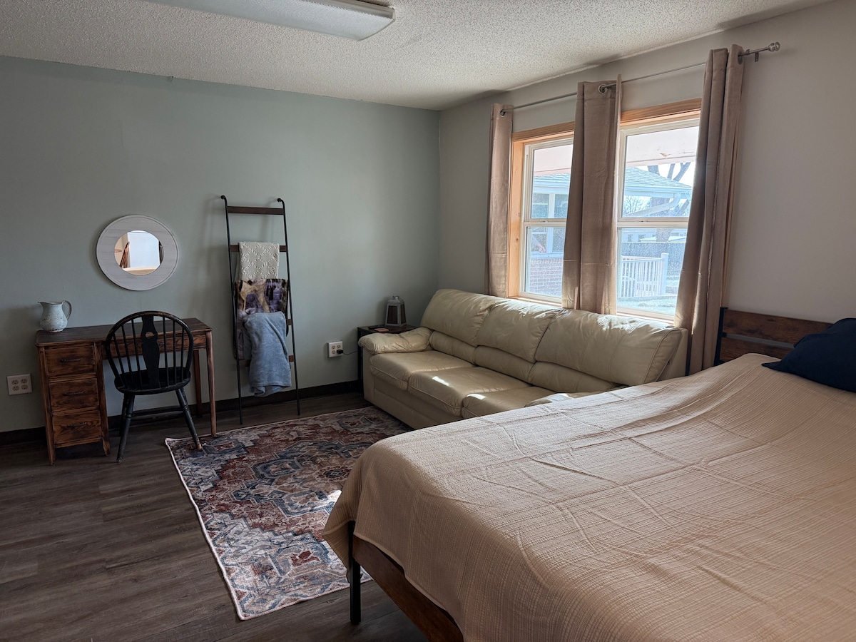 This stylish place is close to must-see destinations in beautiful O’Brien county. Come to enjoy the great outdoors or just come to visit Hartley. Okoboji is just a quick half hour drive away. This space does not have running water in the room but there is hot and cold water available in the coffee bar and of course the bathroom next door.