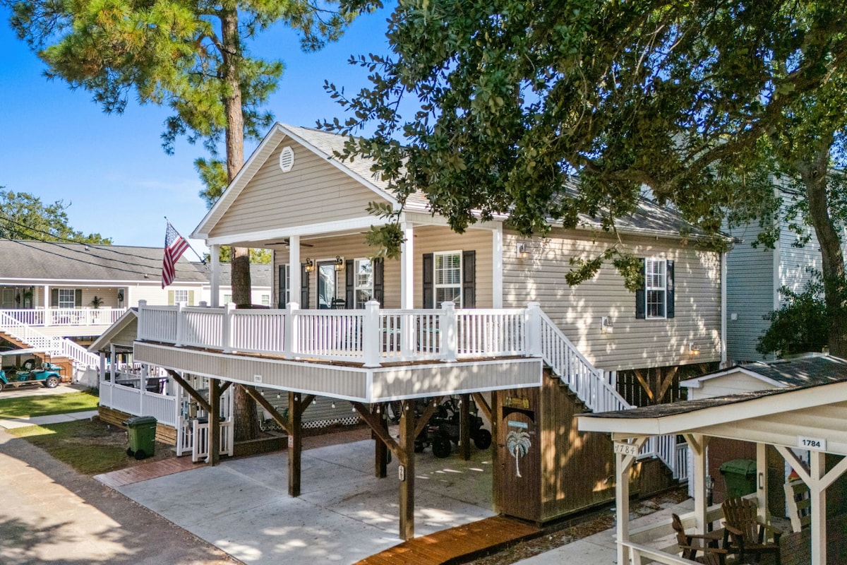 This 3-bedroom, 2-bathroom home is located inside Ocean Lakes Campground, one of the most fun-filled destinations on the coast. Enjoy miles of beachfront access, indoor & outdoor pools, lazy river, arcade, a waterpark for all ages, & the famous nightly golf cart parade that everyone loves! Complimentary golf cart with booking! πβοΈποΈ The beach is just a quick golf cart ride away, making it easy to soak up the sun! π Paid car passes are required to enter the campgroundπ
