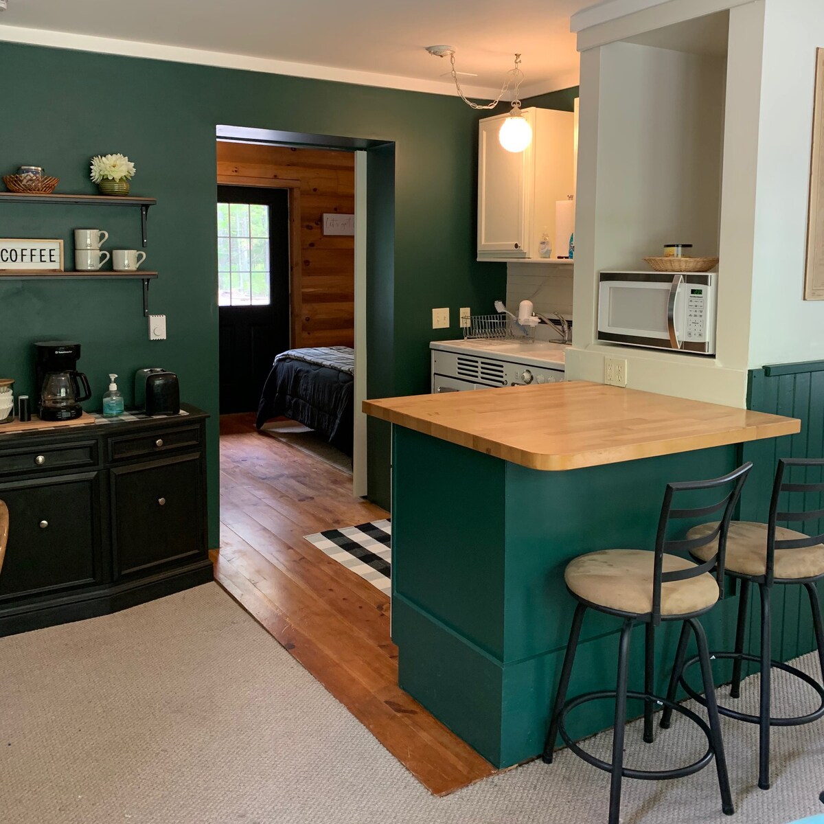 Sisandul 'ukufaka i-sauna yangaphandle kule ndlu yamaplanga intle esehlathini emva kwendlu yethu. Nangona kukho igumbi lokulala eliyi-1 kuphela elifanelekileyo kukho iloft yokulala enebhedi enkulu nefestile ejonge kwihlathi lamaplanga aqinileyo. Sinayo nesofa etsalwayo. Iindwendwe zinezinto eziyimfihlo ezipheleleyo ibe yonke into eyenzelwe indawo etofotofo Le yindlu yamaplanga epholileyo engqondweni....azikho iipati ezinkulu okanye nantoni na. Yiza wonwabele ubuhle basemantla eMic Michigan kuwo onke amaxesha onyaka.