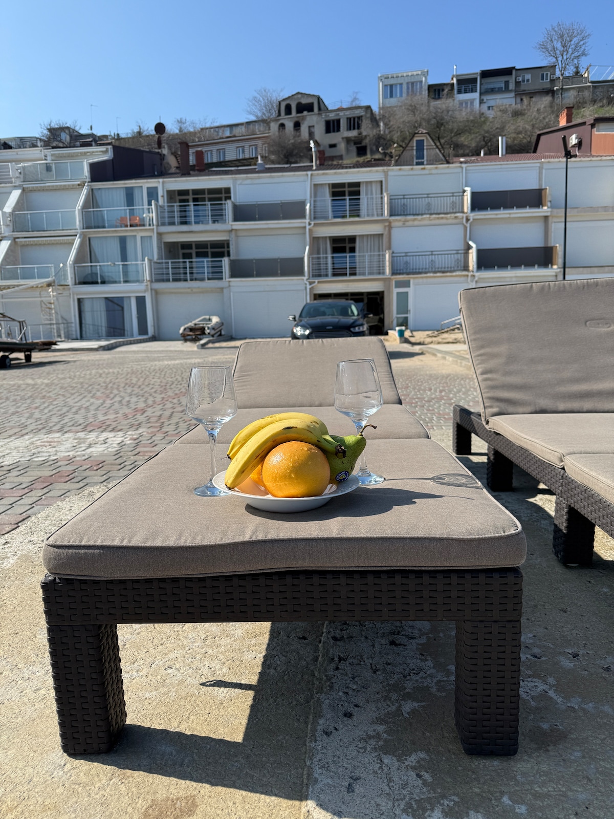 Найкращий комплекс Одеси, р-н Аркадії. Ідеальний варіант для пар, сімей з дітьми, компанії друзів, оскільки має дві спальні. квартира 40 метрів. Невисокий 5 поверх, що робить житло безпечним, але при цьому вид на море, схід сонця. Має укриття -3 поверхи паркінгу, самий глибокий паркінг у Одесі . Є WiFi, розетки, та місцями для сидіння .У комплексі є кафе, ресторани, салони, аптеки, супермаркет, міні місто. Море в 7 хв. пішки. Є можливість орендувати паркомісце в паркінгу від 200 грн/доб