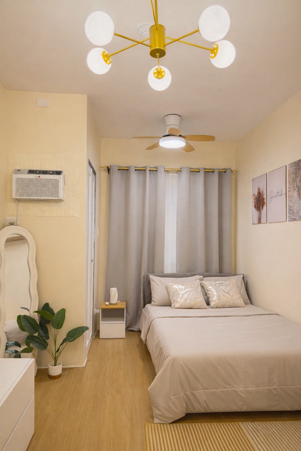 Phola kule flethi itofotofo, yale mihla nevuyisayo eyi-1BR ekwindawo ENYE yaseManchester, eMactan Newtown, kwiSixeko saseLapu-lapu. Apho isondele khona kwii-resort ezineenkwenkwezi eziyi-5, iivenkile zokutyela, iivenkile zekofu, neevenkile ezinkulu. Imizuzu eyi-10 ukuya kweyi-15 ngemoto ukusuka kwisikhululo seenqwelo-moya saseMactan -Ukungena KwiSmart Lock - i-wifi eyi-50 Mbps - I-Netflix yasimahla - Ikhitshi elinento yonke (ISAZISO ESIBALULEKILEYO: Nceda uhlole iingcaciso zendlu ezingezantsi ngaphambi kokuba ubhukishe)