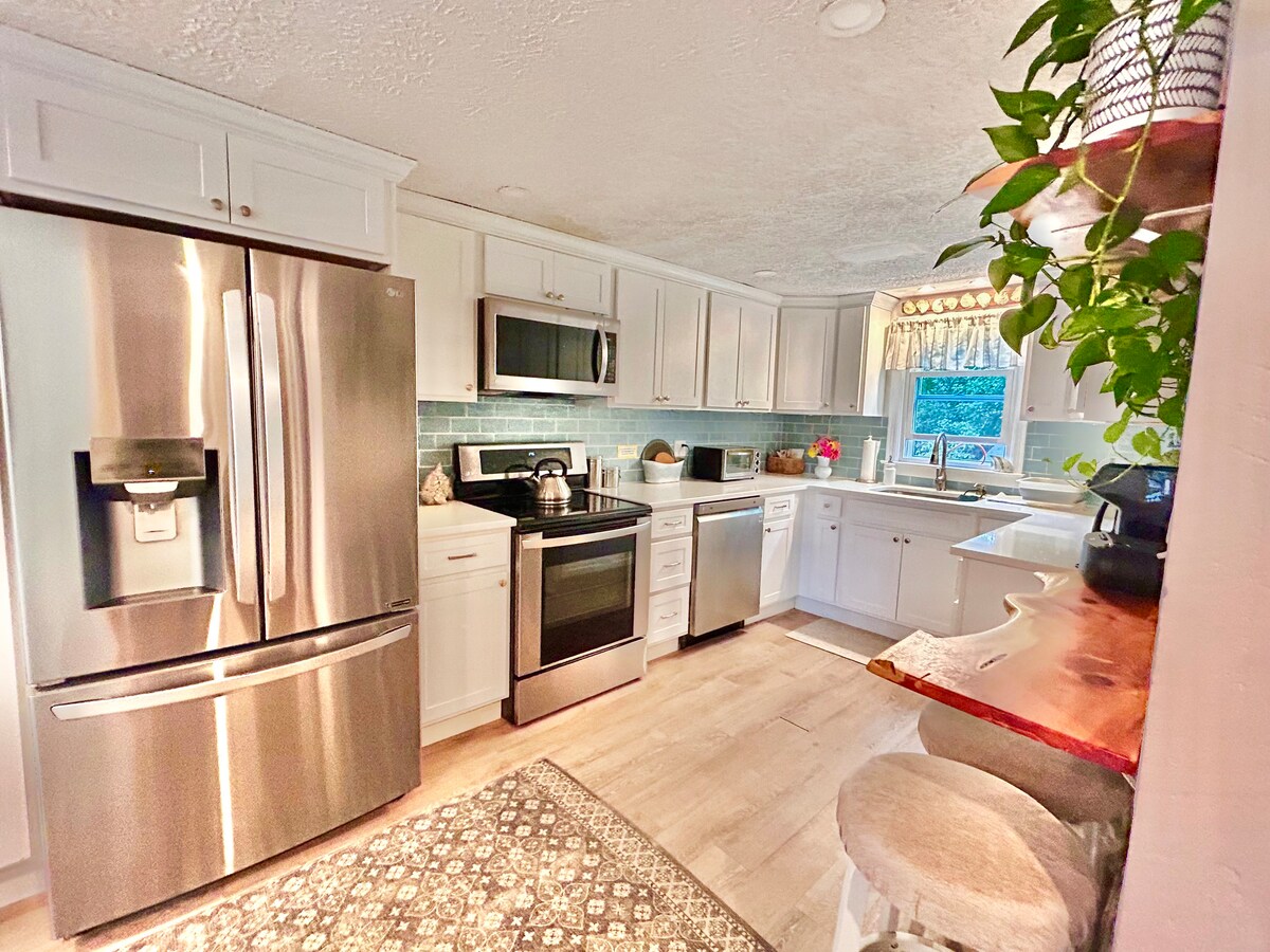 Wamkelekile kwi-Winding Rock House! Isakhiwo sale mihla esisandul 'ukulungiswa, esisembindini wehlathi esineendlela ezininzi zokubuka. Ilungele uhambo lwamaqela, ixesha losapho kunye nokuzonwabisa! Uza kujikelezwa yimithi emide eyenza ilanga likhanye kwindawo evulekileyo (malunga neehektare eziyi-4). Ngaphakathi, uza kufumana indawo yokubasa umlilo entle yezitena, igumbi lokuhlala leMovie Theatre TV, ikhitshi labapheki lokupheka nokubhaka, kunye noomatrasi abatsha kulo lonke ikhaya. I-Winding Rock yindawo yeholide ekumgangatho ophezulu!!