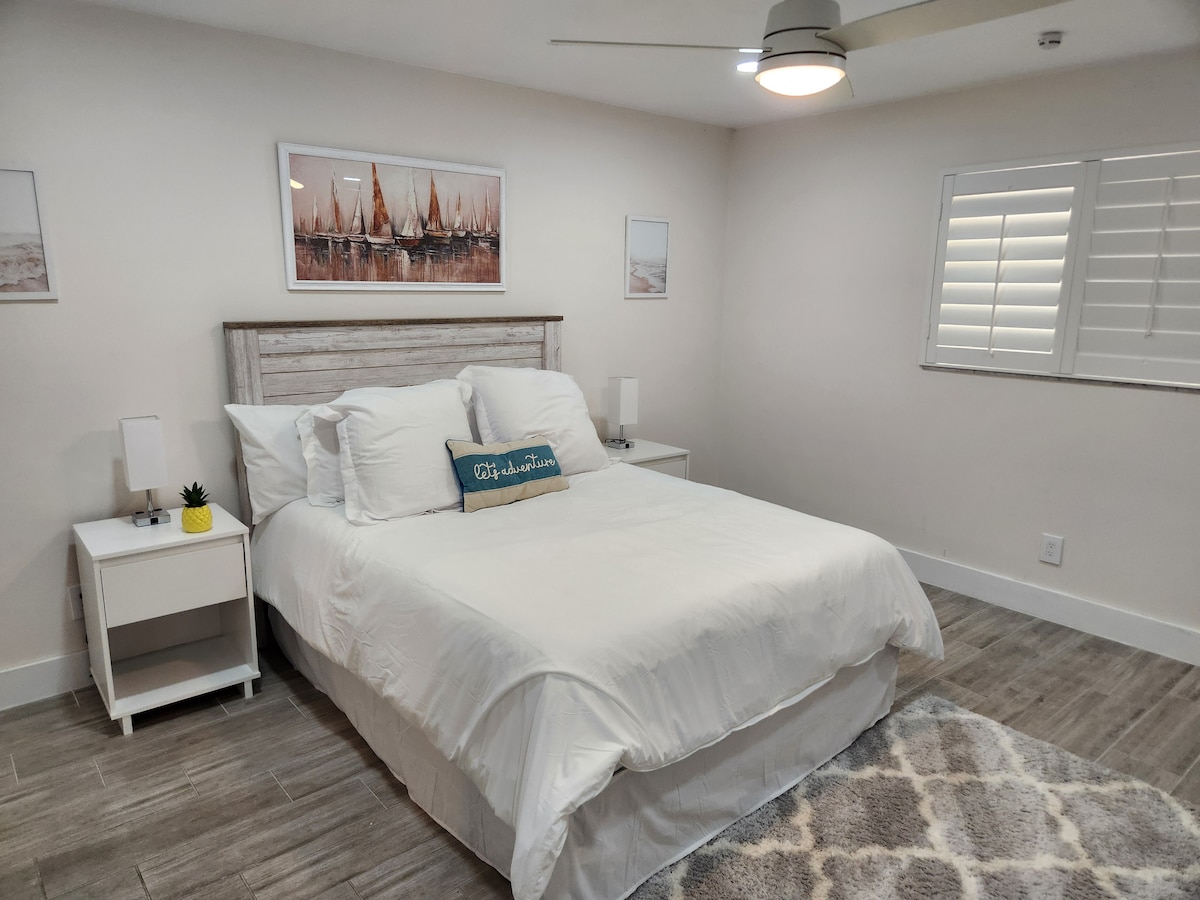 Wamkelekile kwiflethi yakho esandul 'ukulungiswa embindini weOlde Naples! Indawo nje ENYE ukuya kwiilwandle ezintle zaseNaples nazo zonke iivenkile kunye nokutya kwisitrato sesi-3! Iflethi yakho ekumgangatho wokuqala ikwizitepsi ukusuka kwipuli enamanzi ashushu kakhulu. Kwaye ngeefestile ezinkulu ungavumela ukuba kukhanye ilanga laseFlorida elifudumeleyo. Le studio ikwanayo nendawo yokupaka ekhethekileyo, indawo yokuhlamba impahla esetyenziswa ngumntu wonke, ikhitshi, igumbi lokuhlambela, itafile yokutyela, ibhedi enkulu, ukukhupha ibhedi enye ibe inokulala abantu abayi-3.