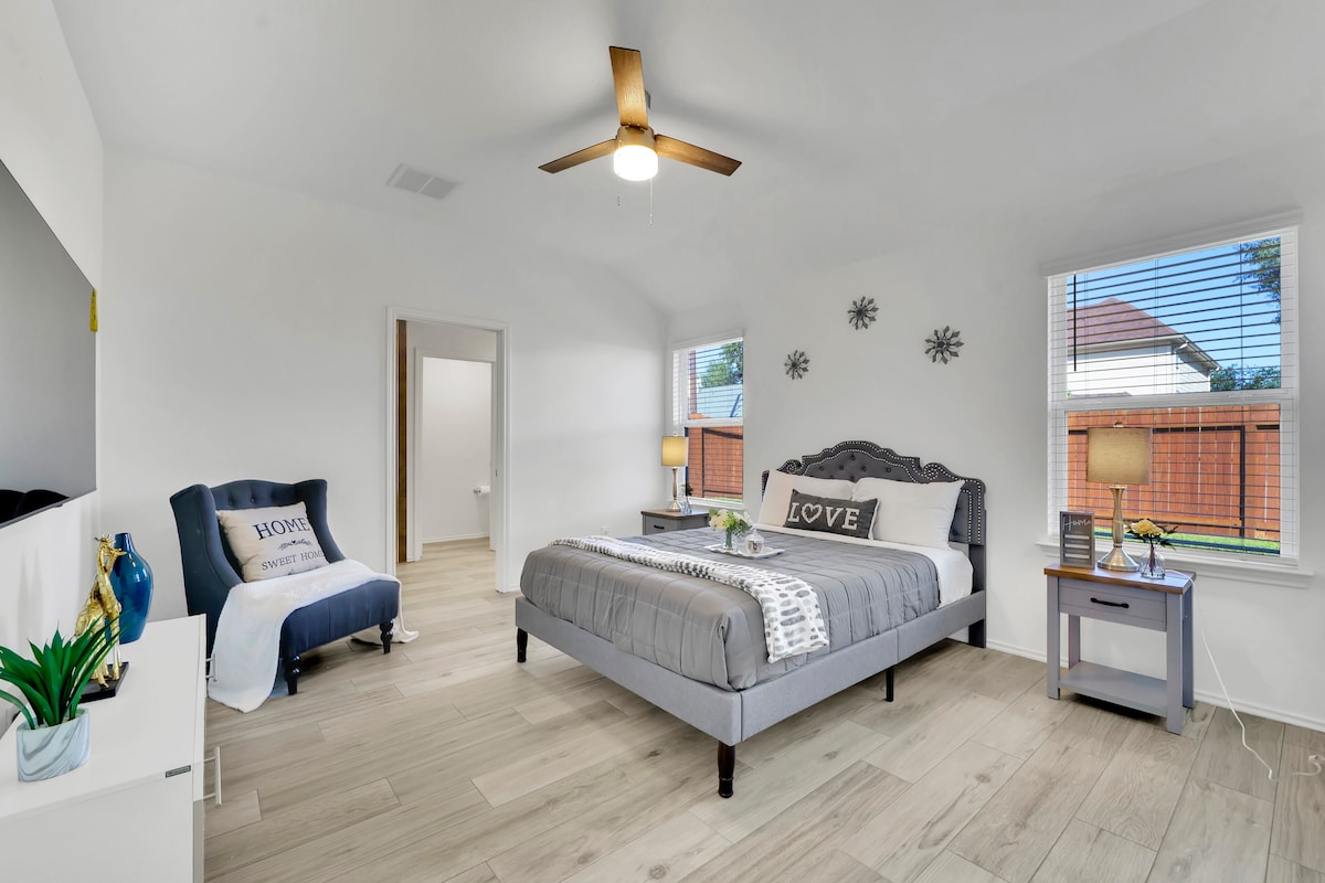 Fumana ubutofotofo nobulula kwikhaya lethu elitsha laseHouston! Ifumaneka ngokukhawuleza ku-I45, iBeltway 8, neHardy Toll Road, indawo yethu ilungele abahambi bezoshishino nabolonwabo. Yonwabela indawo yokutyela evulekileyo, igumbi lokuhlala elikhanya ilanga, ibhafu entle enethayile, nekhabhathi enamagumbi okulala. Indawo yethu inezinto ezinokusetyenziswa zale mihla, kuquka i-Wi-Fi enesantya esiphezulu ne-smart TV yokuzonwabisa. Bhukisha ngoku ukuze uhlale kamnandi uze ufikeleleke ebudeni bokutyelela kwakho eHouston!