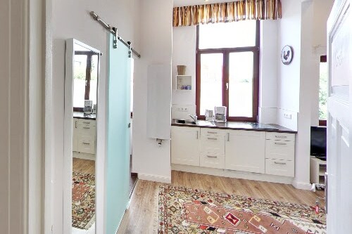 Le flethi intle, enento yonke engatshaywayo (eyi-84 sqm /elungiswe ngokupheleleyo ngo-2012) ifumaneka lula kwigumbi elingaphantsi (elinokukhanya kwasemini) kwindlu enendawo yokuphola edwelisiweyo (eyakhiwe ngo-1910) eZiegelhofviertel. Inendawo eyaneleyo yabantu abayi-2 (kunye nebhedi yesofa kwigumbi lokuhlala kunye nebhedi eyongezelelekileyo etofotofo yomntu omnye = abantu abayi-4). Inefenitshala entle enezinto zonke ezitofotofo zeflethi okanye indlu ekwicomplex yale mihla ohlala kuyo apha embindini we-Oldenburg!