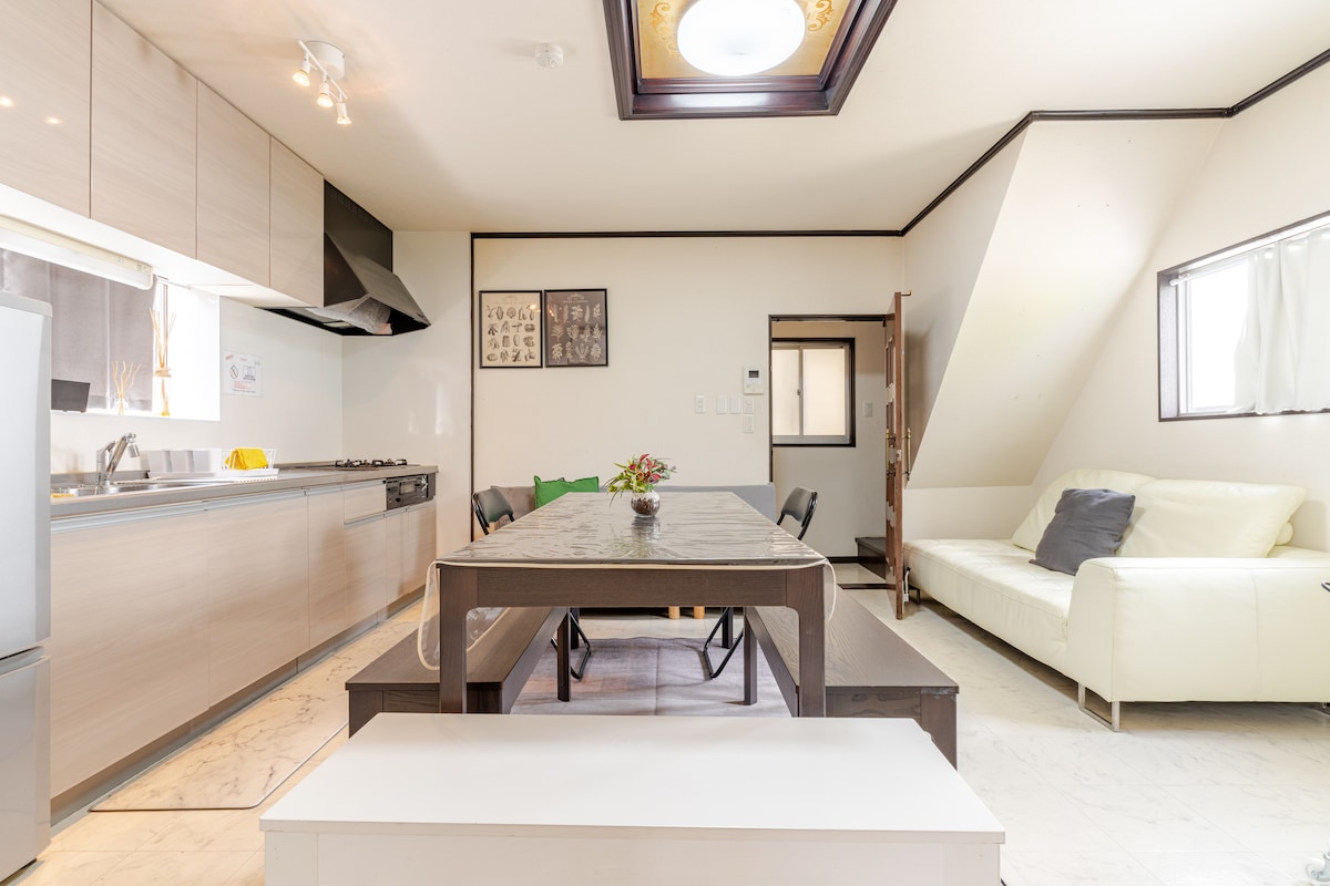Indlu yonke, eyi-144 m², imizuzu eyi-6 yokuhamba ngeenyawo ukuya kwisikhululo, imizuzu eyi-6 ukusuka kwisikhululo esikufutshane ukuya kwisikhululo saseOsaka, enendawo yokupaka, ubuninzi babantu abayi-8, indawo yokubasa umlilo, i-karaoke