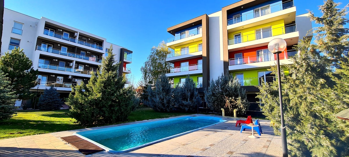 Izimvo ezintle ezingaphezu kwe-90! Yimizuzu eyi-10 ukuya eTherme Imizuzu eyi-5 ukuya kwisikhululo seenqwelo-moya Indawo etofotofo, yimizuzu eyi-1 kuphela xa uhamba ngeenyawo usiya kwisikhululo sebhasi esikhulu ukuze ukhawuleze uye okanye usuke kwisikhululo seenqwelo-moya, eTherme (eyona ndawo inkulu yempilo-ntle, indawo yokuphumla neyokuzonwabisa eYurophu), iOtopeni Swimming Sports Complex okanye iBucharest Old Town. I-intanethi yesantya esiphezulu ifumaneka simahla (iWiFi). Iinkonzo zokubukela imiyalezo SIMAHLA: iNetflix, iHBO MAX, iSky Showtime + iSpotify