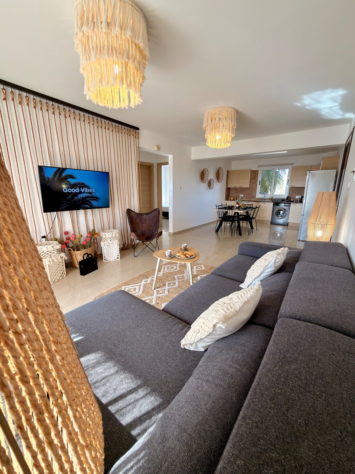 Iflethi okanye indlu ekwicomplex ekwigumbi lokulala elinye, elunxwemeni, ibe ikwindawo ephambi kolwandle engaphazamisekanga. Isondele kwiindawo zamanzi, ulwandle lwezokhenketho lwaseCyprus, iihotele neevenkile zokutyela. Indlela entle yokuqalisa usuku lwakho ngokuvuka uye kwindawo emangalisayo yamanzi aluhlaza. Iilwandle ezinesanti ezintle. Uza kuyifumana kulula kakhulu njengoko imalunga ne-15min drive ukuya kwisikhululo seenqwelo-moya, i-20min ukuya kwi-Ayia Napa, i-30min ukuya eNicosia kwaye ngaphantsi kweyure ukuya eLimassol!