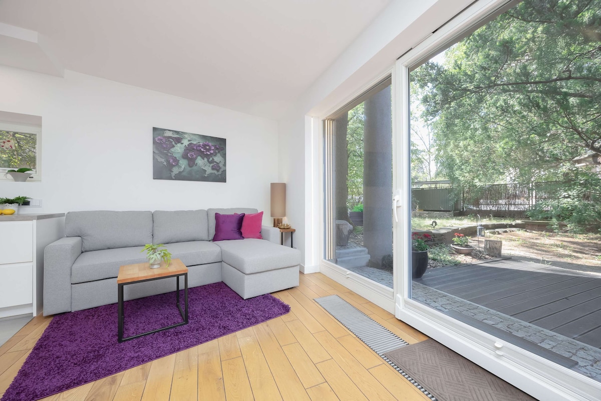 Indlu esemaphandleni ekufutshane neWarsaw enegadi enkulu, ngasemlanjeni i- % {smartwider, edume ngokuhamba ngephenyane. Ingingqi ithe cwaka kwaye iluhlaza, ininzi yebhayisekile neendlela zokunyuka intaba. Umphakathi wendlu esemaphandleni uyakwazi ukuphumla. Indlu esemaphandleni inamagumbi okulala ayi-2, igumbi elinye elikhulu elinegumbi lokutyela, ikhitshi elikhulu, i-veranda negumbi lokuhlambela. Ikhitshi lixhotyiswe ngokupheleleyo. Kukho imitha emibini emikhulu, indawo yokoja kunye nendawo yokulala egadini. Izinto ezinokusetyenziswa zabantwana: ibhedi yosana, imidlalo, iincwadi, izinto zokudlala. I-WiFi ukuya kutsho kwi-300mb ne-smart tv.
