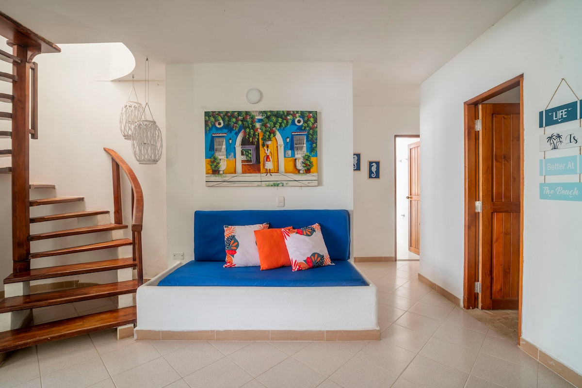 Iflethi okanye indlu ekwicomplex ekhethekileyo ephambi kolwandle, apho ulwandle lufika khona emnyango wakho. Ulwandle lweCaribbean lukulindile kwizitepsi eziyi-40 ukusuka ebhedini yakho, kweyona ndawo ithuleyo nephezulu eRincón del Mar. Yonwabela indawo evulekileyo, eyabucala, ecocekileyo netofotofo. Sikunika inkcazelo ukuze wonwabele ukuhlala kwakho: ezothutho, indawo yokupaka, ukhenketho nezinto onokuzenza. Yonwabela amava akhethekileyo okuvuka kwindlu yakho esemaphandleni engaselwandle, ecaleni kweevenkile zokutyela ezimnandi neyona ndawo ifanelekileyo yokutshona kwelanga!