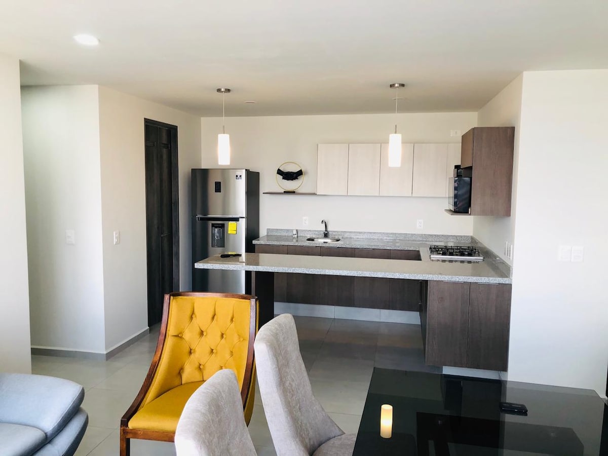 Iflethi entle ehonjiswe ngesitayile saseNordic, ivulekile kwaye iqaqambe kakhulu. Kwindawo ekhuselekileyo nethuleyo, yindawo entle yokuya nakweyiphi na indawo yesixeko. 8 imiz. I-Plaza del Sol Imizuzu eyi-11. I-Expo Guadalajara Imizuzu eyi-15. Ibala laseAkron (eChivas) Imizuzu eyi-8. ITESO Imizuzu eyi-5. I-Plaza La Perla Inendawo yokupaka eyi-1 enesango lombane. Indawo etofotofo elungele iiholide okanye uhambo lwezoshishino, amanyathelo ukusuka kwiindlela eziphambili, iivenkile ezinkulu, izikwere zokuthenga, iivenkile zokutyela kunye neepaki.