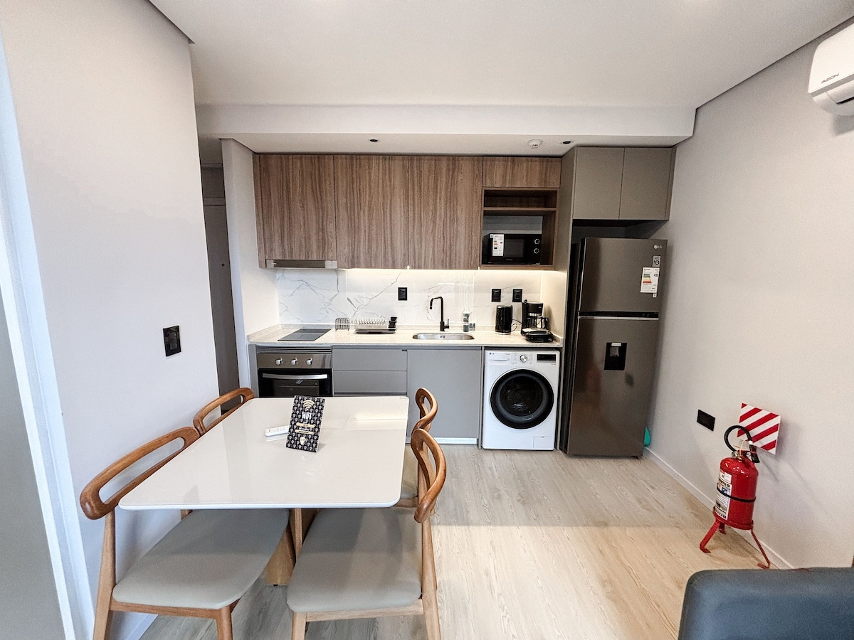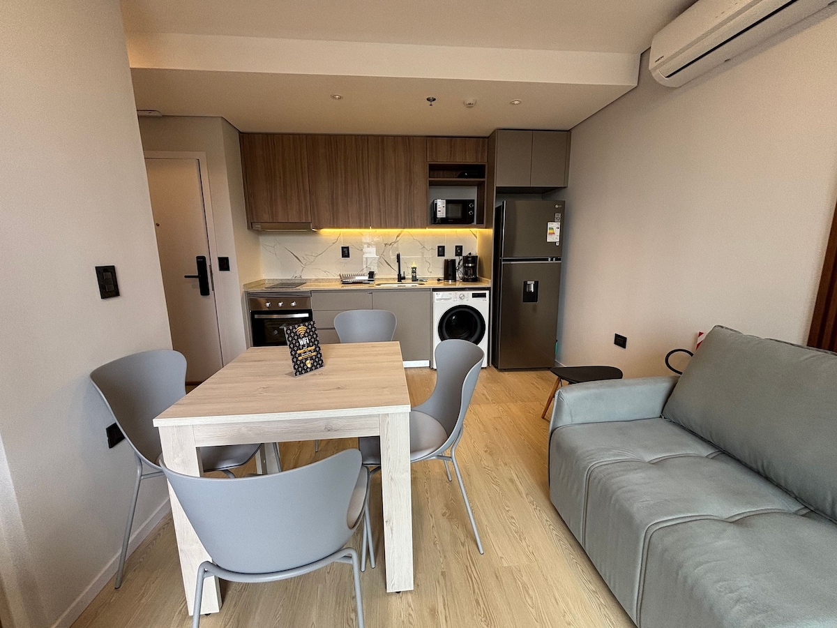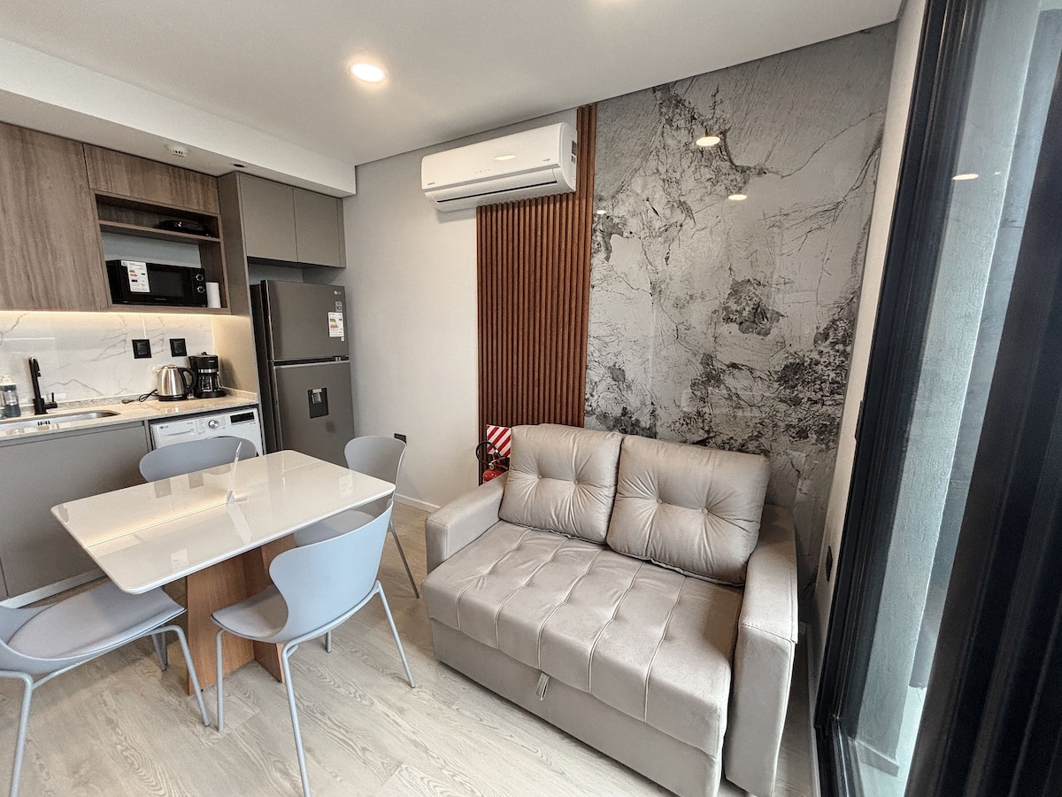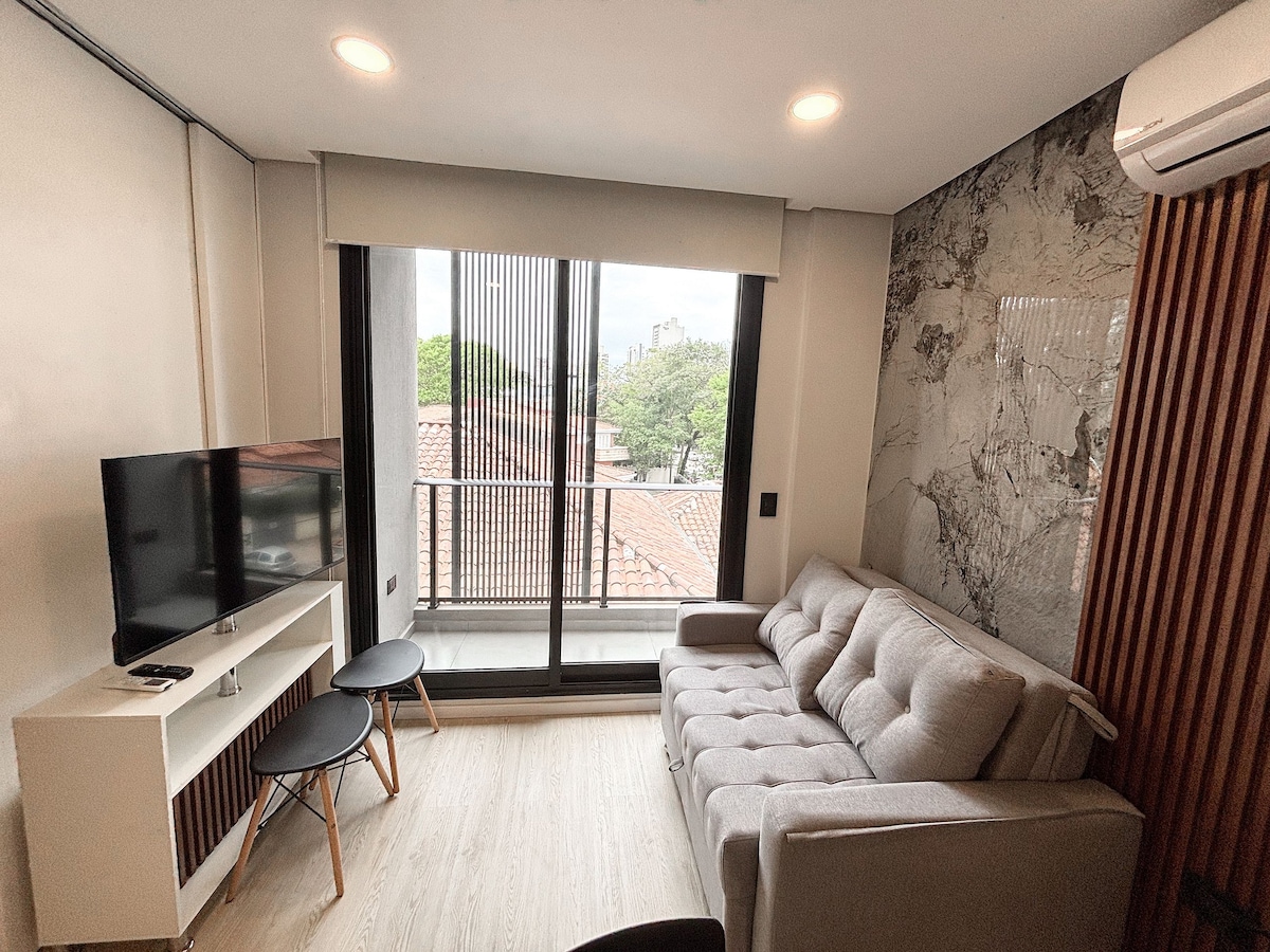 Spacious and modern in Asunción’s financial center. You’ll be steps from Shopping del Sol and Paseo La Galería, and just 10 minutes from the airport. Perfect for couples, business travelers and tourists. Equipped kitchen, fast Wi-Fi, A/C and TV. Access to pool, gym, coworking and terrace bar. 24/7 security. Designed for comfort whether you work or relax.