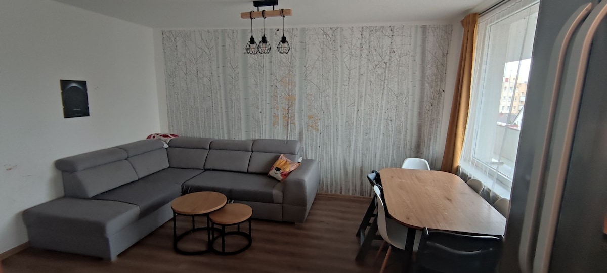Iflethi entle enelanga (43 m2) enendawo yayo yokupaka egqunyiweyo nomatshini okhupha umoya obandayo okanye oshushu kwimizuzu eyi-5 xa uhamba ngeenyawo usuka embindini wePardubice nemizuzu eyi-7 xa uhamba ngeenyawo usuka kwitreyini nakwisikhululo sebhasi. Kukho ikhitshi elinento yonke (i-toaster, umatshini wokwenza ikofu, iketile, i-induction, ioveni, ifriji nezinto zokupheka). Le flethi ibalungele abantu abadala abayi-2. Kukho ibhedi elala abantu ababini, iTV, idesika nesitulo esikhulu. Igumbi lokuhlambela linendawo enkulu enomnyango ophumela ngaphandle nomatshini wokuhlamba iimpahla. Le terasi inendawo yokuhlala. Sikhangele phambili ekukuboneni!