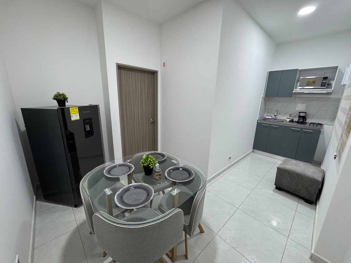 I-New Apartaestudio La Flora - Norte Cali, icandelo elizolileyo, indawo ebalaseleyo yesixeko. I-Gastronomic, abakhenkethi, iindawo zoshishino kunye namaziko okuthenga afana neChipichape, iindawo eziluhlaza - iParque La Flora. Isikhululo seenqwelo-moya esikufutshane. Iflethi (31 M2) -Fridge -Washer dryer -Kitchen -Umatshini wokwenza i-Coffee -Microwave oven -I-air-conditioning -Smart TV Ibhedi elala abantu ababini -Sofa bed -PC Desk/Isitulo -Breakfast bar table kunye 2 izitulo -Coffee table -Internet Wi-Fi 200 megabytes -Cable TV -Netflix -Amazon Prime
