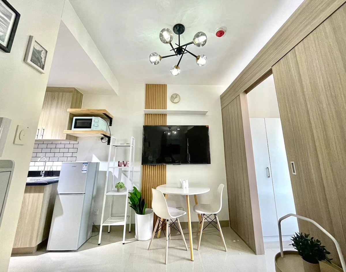 Iholide yesixeko ezolileyo ikulindile kule ndawo intle enegumbi lokulala eliyi-1 nebhalkhoni eseShore 1 Residences. Uhambo nje olufutshane ukusuka kwi-MOA nemizuzu eyi-15 ngemoto ukuya eNAIA (iikhilomitha eziyi-4.5), yeyona ndawo ifanelekileyo enoba ukwidolophu yomsebenzi okanye iholide. Le ndawo eyi-27 sqm yenziwe ngendlela ecingwe kakuhle ukuze uhlale kamnandi. Yonwabela izinto zale mihla ezifana ne-Smart TV eyi-55 "eneYouTube neNetflix, ibhedi yesofa etofotofo, i-Wi-Fi ekhawulezayo eyi-200mbps, nebhedi etofotofo onokuphumla kuyo emva kosuku olude.