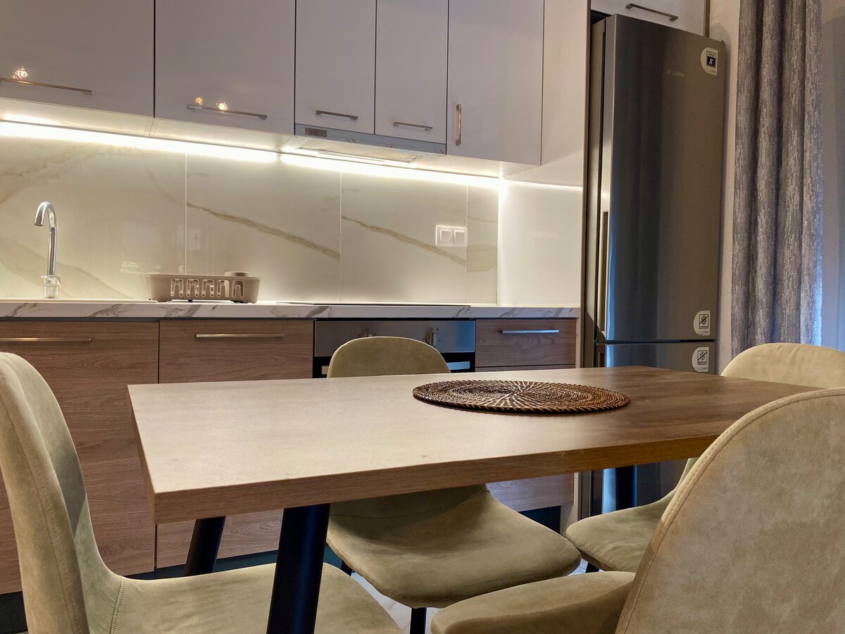 Le flethi okanye indlu ekwicomplex ephambi kolwandle idibanisa ubuhle obucocekileyo nobutofotofo. Indawo yokuhlala iqaqambile kwaye ivulekile, inefenitshala etofotofo neefestile ezinkulu ezidibana nolwandle. Ikona yendawo yokuphumla entle inezibane ezithambileyo nezinto zokuhombisa ukuze uzive uphumle. Ikhitshi elivulekileyo lihle kwaye liyasebenza, linezixhobo zale mihla nesiqithi esisembindini. Igumbi lokulala lizolile kwaye lincinci, linomhlaba kunye negumbi lokuhlambela elivulekileyo. Ilungele indlela yokuphila etofotofo nenomtsalane ngaselwandle.