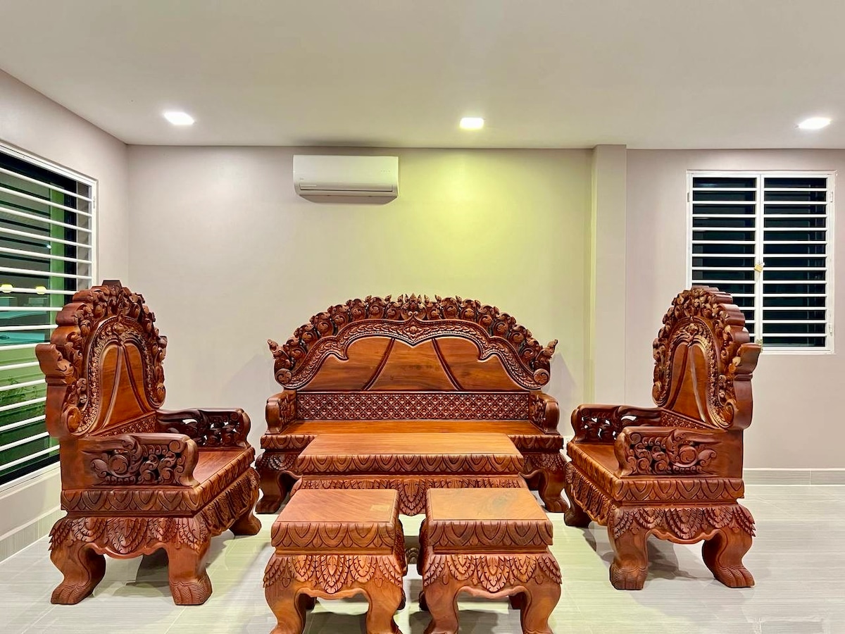Yonke indlu enendawo yokuphola ePhnom Penh Gated Community enokhuseleko lweeyure eziyi-24. Le ndlu inamagumbi ayi-4, iibhedi eziyi-3 namagumbi okuhlambela ayi-4, igadi enkulu elungele izinto ezenziwa phandle okanye indawo yokubraya. Onke amagumbi ane-air conditioner. Le ndlu enendawo yokuphola isandul 'ukwakhiwa ngo-2022. Igumbi lokuhlala line-smart TV, kwaye ikhitshi linendawo evulekileyo enetafile yokutyela ebanzi. Iveranda engasemva ibonisa indlela yesixeko. Ungalonwabela uhambo lwakho oluzolileyo ujikeleze ipaki enkulu ngaphakathi kwentsapho ekumgangatho ophezulu. Ngaphantsi kwemizuzu eyi-5 ngemoto ukuya EAEON MALL3.