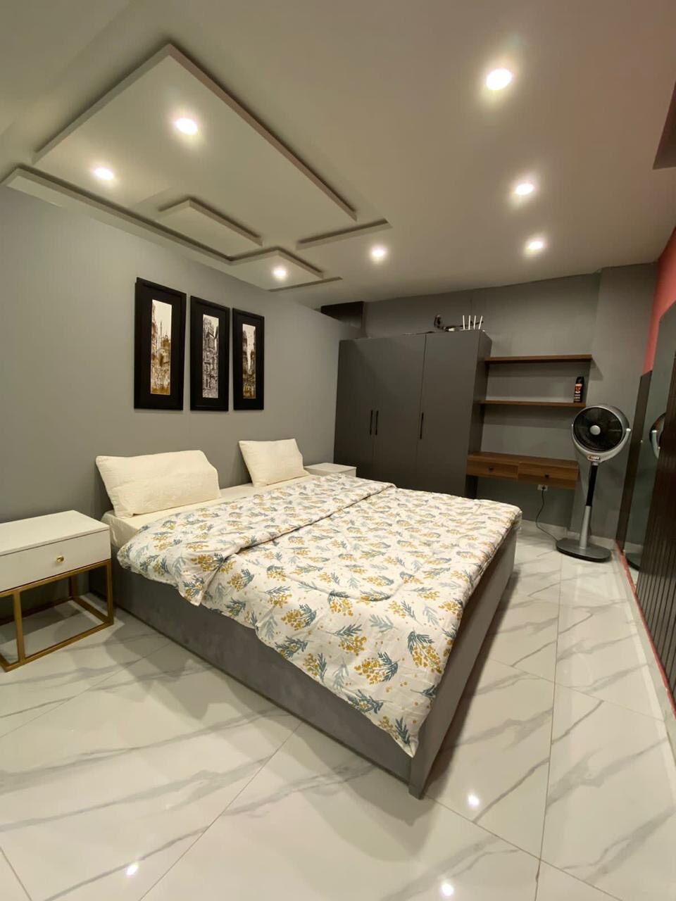 1 I-BHK Luxury Iflethi enefenitshala epheleleyo yezibini, abahlobo, amabhinqa kunye neentsapho ezikwindawo ephambili yezorhwebo eSector C apho yonke into ikumgama wokuhamba ngeenyawo embindini we-bahria town lahore Indawo ekhuselekileyo yabucala nefihlakeleyo - Ukuzingenela ngePIN Code - Akukho mfuneko yokudibana nabani na & Akukho ndawo yokwamkela iindwendwe - Ukhuseleko olufumaneka ubusuku nemini - Ukuhonjiswa kobuhle bale mihla - Ibhedi Enkulu Enomatrasi Othambileyo Wentwasahlobo - I-AC ikwigumbi lokulala kuphela - Ikhitshi - Indawo Yokupaka Esimahla Esesitratweni - Indawo Yokuqala Ukuze ufumane inkcazelo engakumbi DM