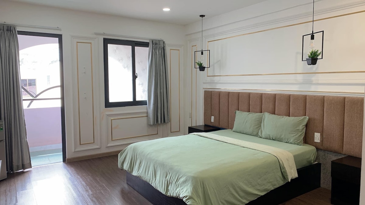 Elegant studio in District 3, just 10 mins to District 1. Spacious living area, modern bathroom, shared kitchen (24/7). Daily maid service (8am–8pm), free laundry, and motorbike parking included. Surrounded by great restaurants and convenience stores. Perfect for up to 3 guests seeking comfort, style, and location in the heart of Saigon.