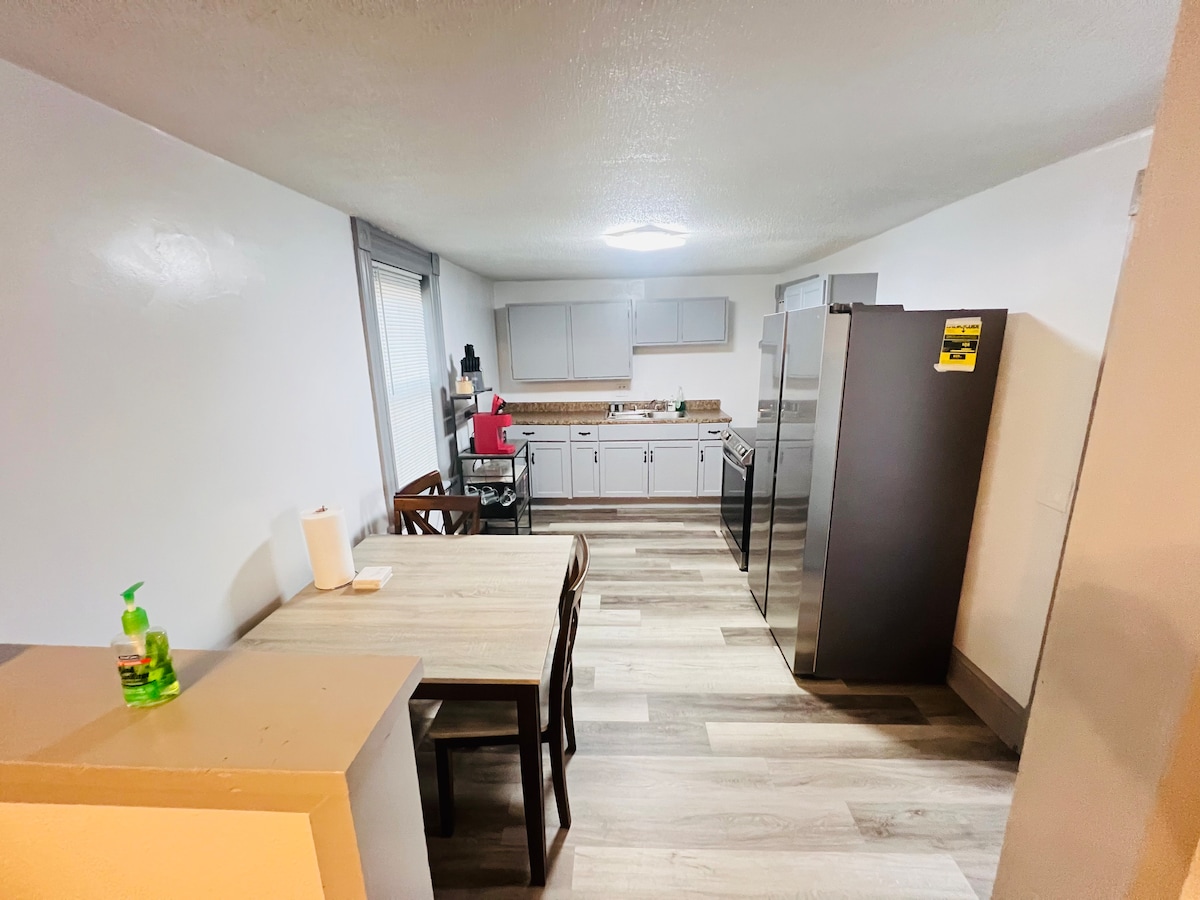 Le flethi isandul 'ukulungiswa enelanga elikhanyayo yimizuzu ukusuka kwindawo yokutyibilika ekhephini yaseBosquet ibe ikufutshane nedolophu. Inekhitshi elikhulu nendawo yokugcina ukutya. Itafile entle yegumbi lokutyela le-oki. Igumbi lokuhlala elitofotofo, eline-Roku TV yee-intshi eziyi-43. Indawo yomlilo yombane. Iibhedi ezinkulu kuwo omabini amagumbi okulala. Ikhabhathi enkulu yokungena. Imizuzu eyi-28 ukusuka kwincopho yaseJiminy. Kufuphi neevenkile zokutyela ezisedolophini neendawo zemidlalo yeqonga.