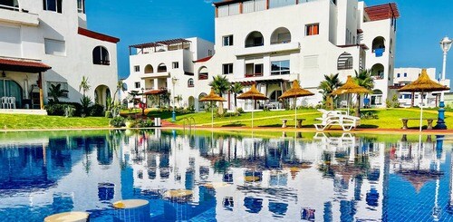 Iflethi yamaphupha enendawo yokubuka ulwandle nepuli eCabo Negro, eMorocco. Igumbi lokulala eliphambili, igumbi labantwana, ikhitshi elinento yonke, igumbi lokuhlala elikhanyayo elineTV edityanisiweyo, igumbi lokutyela elingu-8 pers. Indawo eneepuli ezinkulu eziyi-2 zaseToboggan, amabala ebhola ekhatywayo amancinci, iPé, ibala lokudlala. Ukufikelela ngokukhawuleza elwandle, kwiivenkile zokutyela, kwiivenkile, kwiWater Park, kwiQuad, kwihashe, kwibala legalufa. Inkonzo yokupaka kunye nokuhanjiswa (i-Glovo) iyafumaneka. Ilungele iholide yentsapho. Ipuli yokuhoya ayisebenzi ebusika ukususela nge-1/10 ukuya nge-15/5