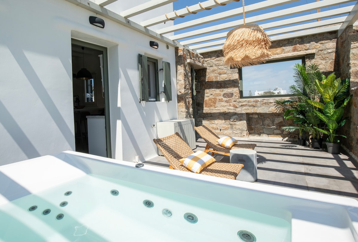 Ilungiswe ngo-2023 kwaye ifumaneka kakhulu kwinduli encinci, phezu kwesikwere sedolophu, indlu yedolophu inika ubunewunewu bokuhamba ngaphantsi komzuzu ukusuka embindini we-Mykonos, kodwa wonwabele iingenelo zezinto eziyimfihlo, zepuli esetyenziswa nangabanye abantu kunye nendawo yokupaka yabucala. Ukucoca indlu qho emva kweentsuku eziyi-3 kwaye qho emva kweentsuku ezimbini ngoJulayi noAgasti. Le ndawo yenziwe ngobona bomakhi babhiyozelwa kakhulu kwaye baziwayo kumazwe ngamazwe eGrisi. Indawo = 75m2.