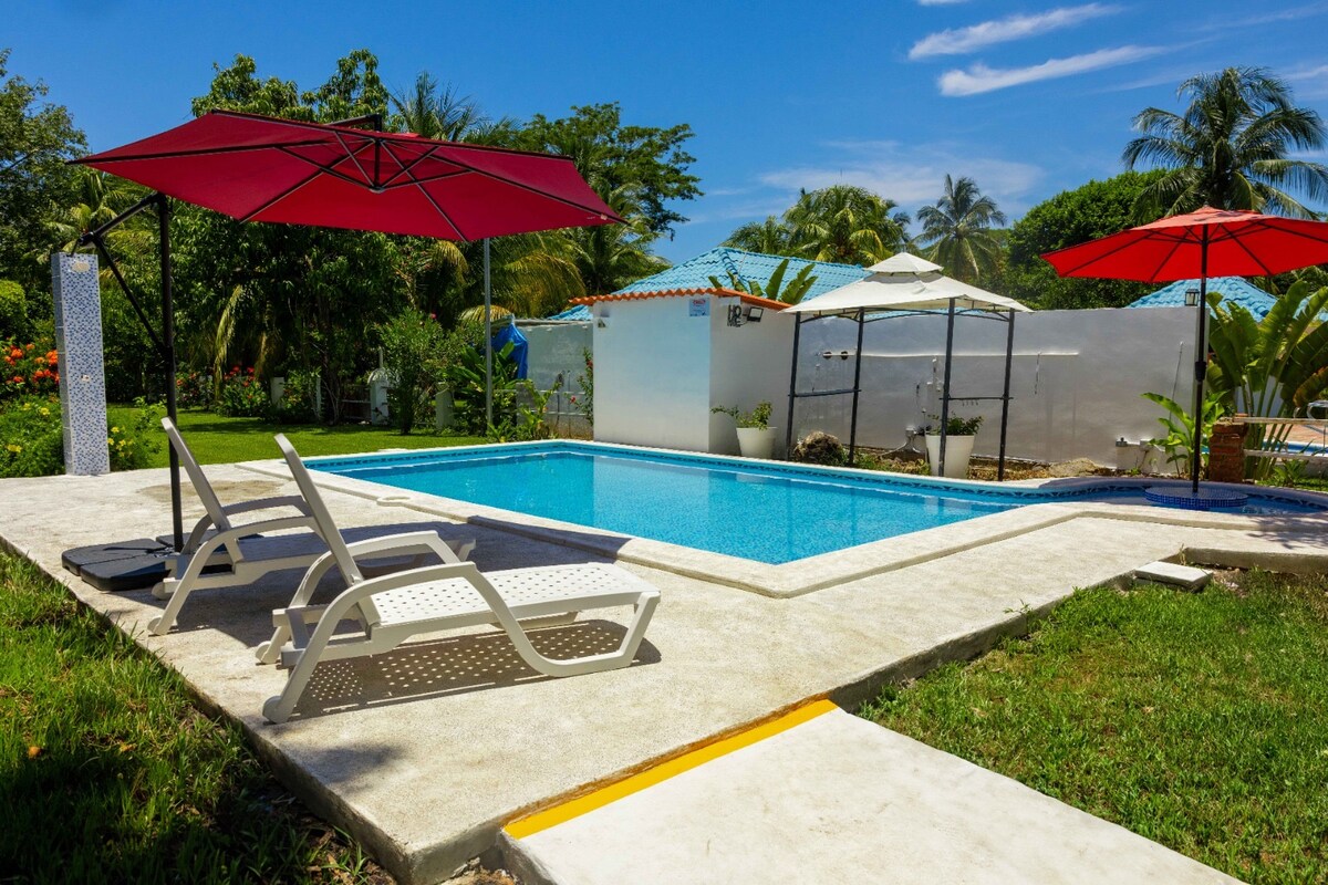I-Mangomar kwindlu enkulu emalunga nesiqingatha se-acre (1.2 Acre apx) phambi koLwandlekazi lwePasifiki elunxwemeni oluhle lwaseSihuapilapa (Ayaziwa kangako, imfihlelo encinci iindwendwe zethu ezithandekayo ezifuna ukuyigcina). Ipuli enkulu, onke amagumbi ane-AC, I-WIFI, amagumbi okulala ayi-4 anamagumbi okuhlambela ayi-4 apheleleyo (ayi-2 abucala nama-2 asetyenziswa nangabanye abantu), umchamo, ibhari yaselwandle, i-ping pong, i-swings nebala lokudlala labantwana, ikhitshi elipheleleyo, ibhokisi yokhuseleko, i-bbq yaseArgentina, i-massage nebhedi yosana xa iceliwe nolwandle olukhuselekileyo. Sineephaneli zelanga ezilungele indalo.