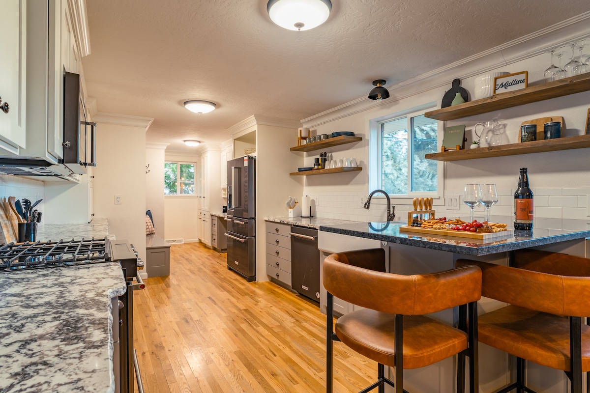Molo intsapho yakwa-Airbnb! Jonga le ndawo intle netofotofo ndisandul 'ukulungisa! Eli lizinga eliphezulu. Ungakwazi ukufikelela kwikhitshi elipheleleyo elinemiphezulu yeetafile zelitye lenyengane, igumbi lokuhlala eline-50 "TV ephucukileyo, u-Jack no-Jill kwigumbi lokuhlambela elineshawa, amagumbi okulala amabini kunye neintanethi ekhawulezayo! Eli khaya likwicala elincinci nelitofotofo elinobuhle nobuhle bendlu endala. Ifumaneka kwidolophu endala iPocatello ecaleni kwendlela yesixeko. Nceda ufunde ingcaciso EPHELELEYO ngaphambi kokubhukisha ukuze uhlale kamnandi!