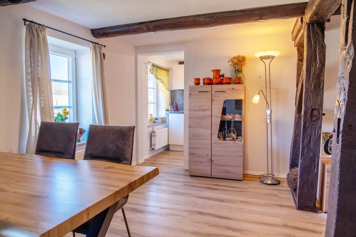 Uhlala kwindlu ekwisakhiwo esineendonga zamaplanga nezamatye esidwelisiweyo esakhiwe ngo-1774 kufuphi neDetmold, enendawo yokujima, i-cinema, i-gazebo neendawo ezivulekileyo zokubuka iTeutoburg Forest. Ikhitshi elipheleleyo, i-sauna ye-infrared, igumbi elihle elineoveni kunye nento yokufudumeza yombane. Igumbi lokulala elineendonga zodaka, elinye elingaphantsi kophahla. Igadi ephambi kwendlu onokuyisebenzisa. Abantwana nezilwanyana zasekhaya zamkelekile. Ivenkile enkulu ikwiikhilomitha eziyi-1.1, isixeko sikwiikhilomitha eziyi-3.5. Ukufudumeza ngombane okanye ngesitovu, amaplanga okubasa aqukiwe