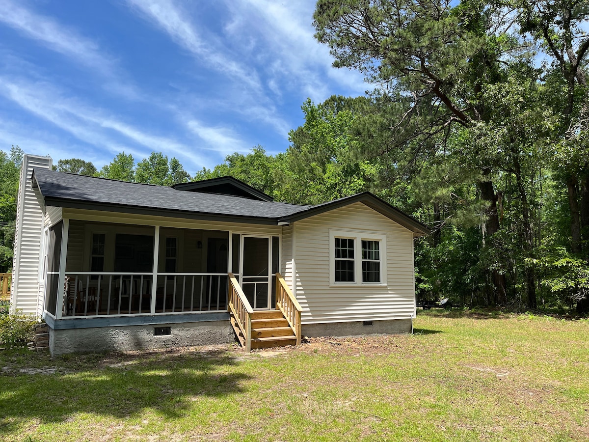Eli gumbi lokulala likhulu linamathele kwindawo yethu kodwa livaliwe ngokupheleleyo ibe lingabucala! Inebhari yekofu, ifriji ne-microwave. Igumbi lokuhlambela elilungisiweyo elineshawa enkulu enesithethi seBluetooth. Iitoni zendawo yokuxhoma iimpahla. Igumbi lokulala livulekele kwidekhi yabucala, iveranda, indawo yokosa amalahle, nomgodi womlilo. Indawo yokungena yabucala kumnyango weglasi otyibilikayo. -POOLER- Iivenkile ezininzi neevenkile zokutyela ezikufutshane Imizuzu eyi-5 ukusuka kwi-i95 Imizuzu eyi-10 ukusuka kwisikhululo seenqwelo-moya i-sav Imizuzu eyi-15 ukusuka edolophini iSav Imizuzu eyi-45 ukusuka kwisiqithi saseTybee