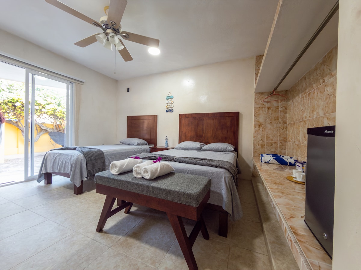 Wamkelekile eNäab, indawo yokuzola nobuhle embindini weMerida, eYucatan, apho ukubuka iindwendwe kwaseMexico kudityaniswa nempilo epheleleyo. Yonwabela iindawo zethu eziquka i-spa, iziko elipheleleyo, nophahla olulungele ukuphumla ngomoya ococekileyo, ujonge isibhakabhaka esineenkwenkwezi okanye ubuke ukutshona kwelanga kweYucatec.” Eli gumbi linebhedi enkulu, ibhedi enye, ibhari encinci, iTV, umatshini okhupha umoya obandayo okanye oshushu.