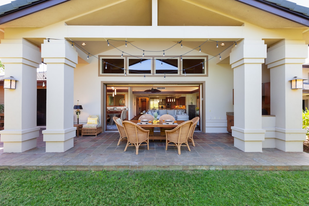 Indlu yasedolophini enaBhedi ayi-2 namagumbi okuhlambela ayi-2,5 enomtsalane kwi-Fairways entle e-Mauna Lani! Ihonjiswe kakuhle kwaye inento yonke oyidingayo kwikhaya lakho elikude nekhaya. Ipuli/ibhafu enamanzi ashushu/indawo yokujima ekwisitayile se-resort ekule ndawo. Ikufuphi namanxweme, iindawo zokuthenga, iivenkile zokutyela. Ukungena Kwiqela Laselwandle Kuzo Zonke Iindwendwe Zethu!! Sishiya ikhadi lethu lokungena ukuze iindwendwe zethu zilisebenzise ebudeni bokuhlala kwazo— indawo yokupaka yabucala enesango, ukusetyenziswa kwe-cabana/isitulo saselwandle simahla. IBHITSHI EMANGALISAYO yokuphumla, yokuntywila, neyokuzonwabisa emanzini!