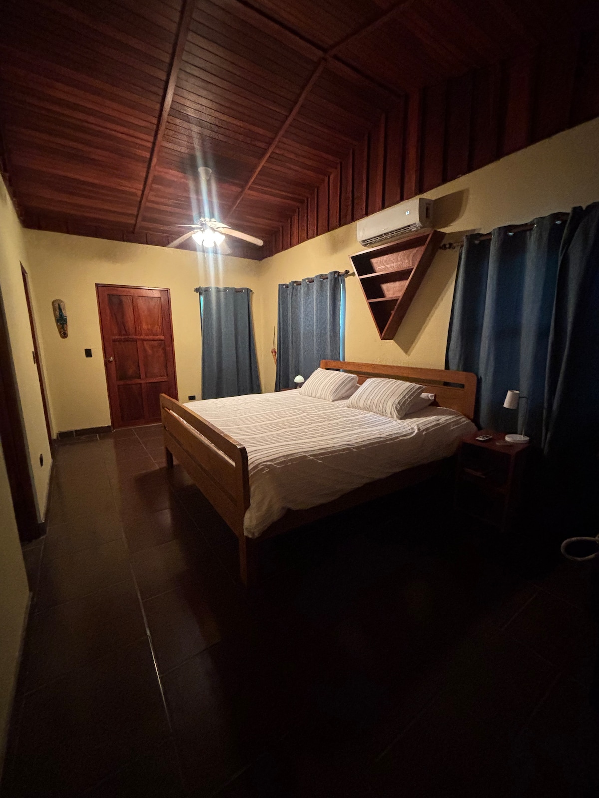 Casita de la Luna and its fraternal twin, Casita del Sol make up the first floor of a newly-built house on the ocean, at the mouth of Rio Nosara. Peaceful, quiet, a bit away from Guiones and Pelada, but close enough you can walk, drive or grab a tuktuk. Enjoy your own entrance and a beautiful shared beach-front salt-water pool overlooking the wilderness. Disconnect from the world in this perfect spot, where you can swim, explore tide pools, SUP on the river, or surf empty waves just steps away.